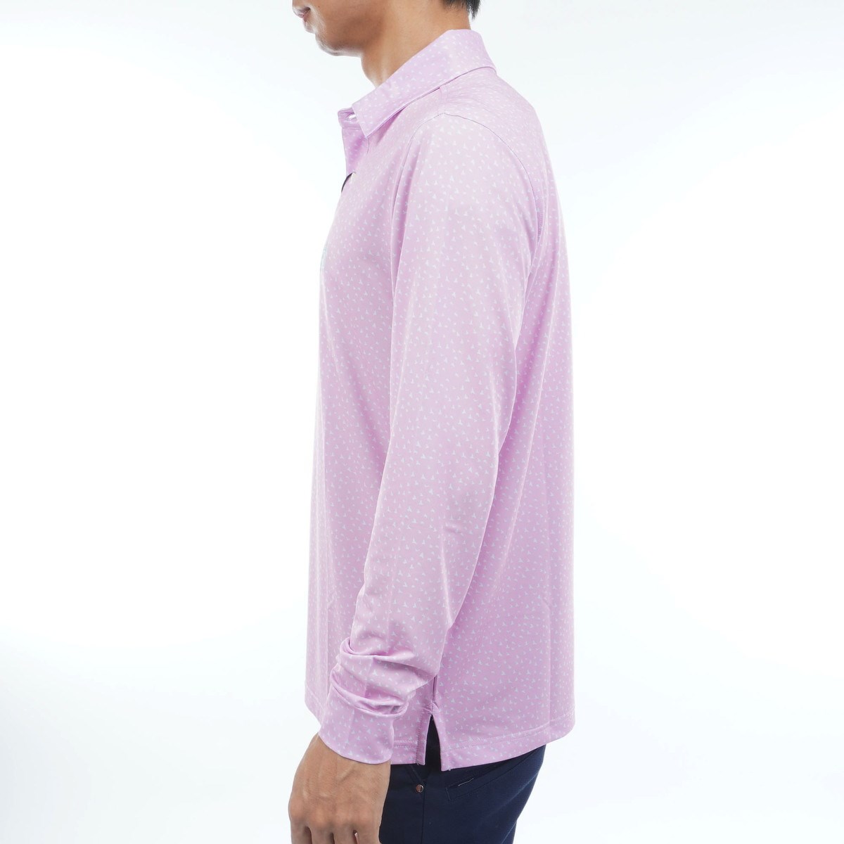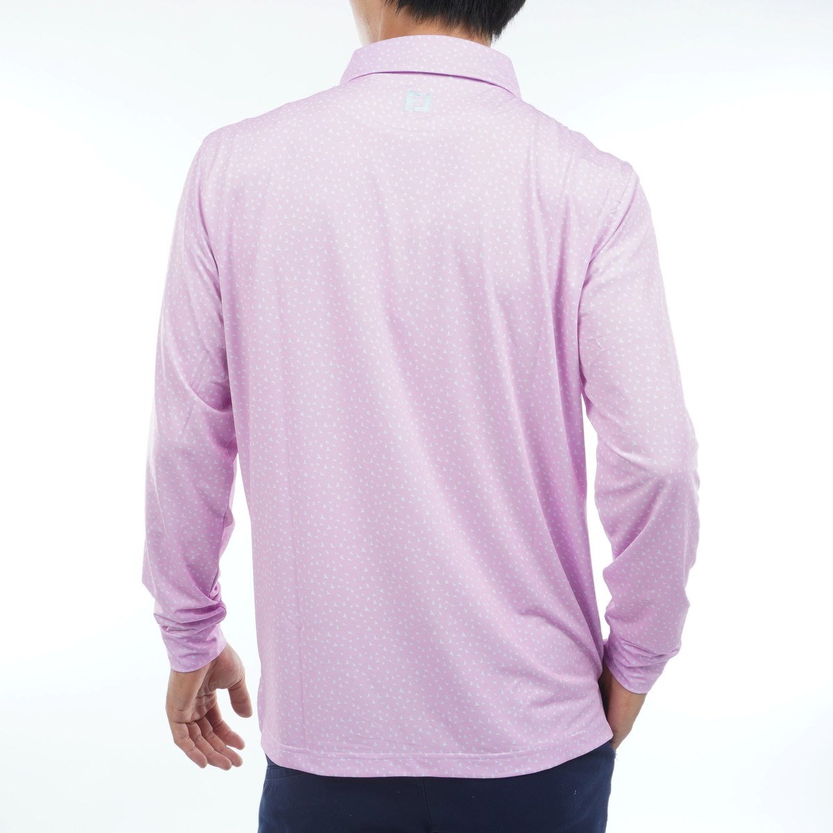 フットジョイ Foot Joy ストレッチ バードプリント長袖ポロシャツ XL オーキッドピンク/アイスウォーター