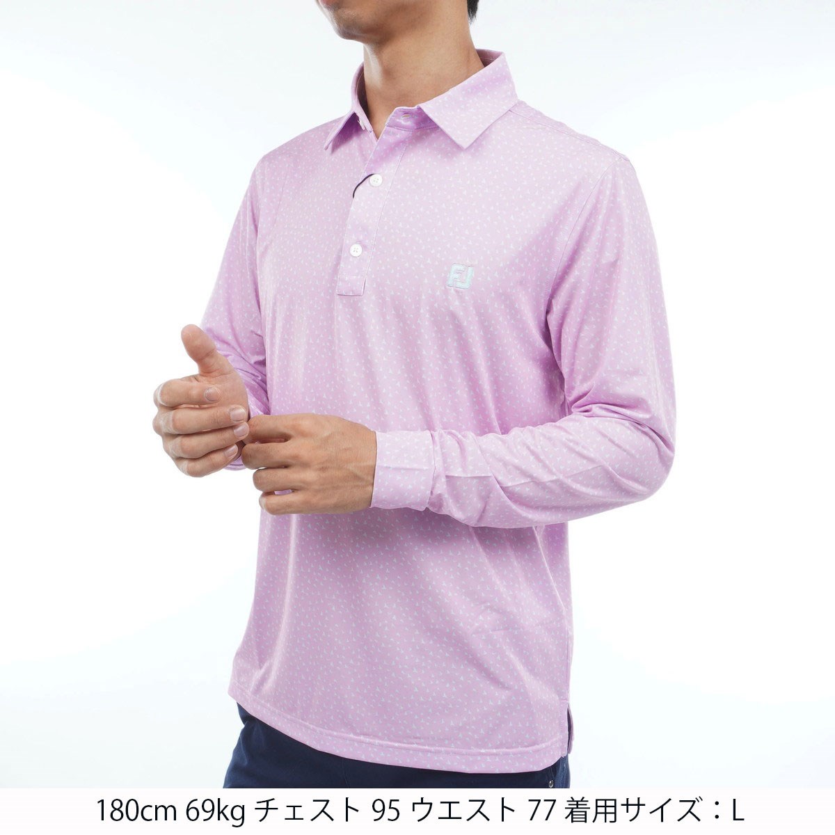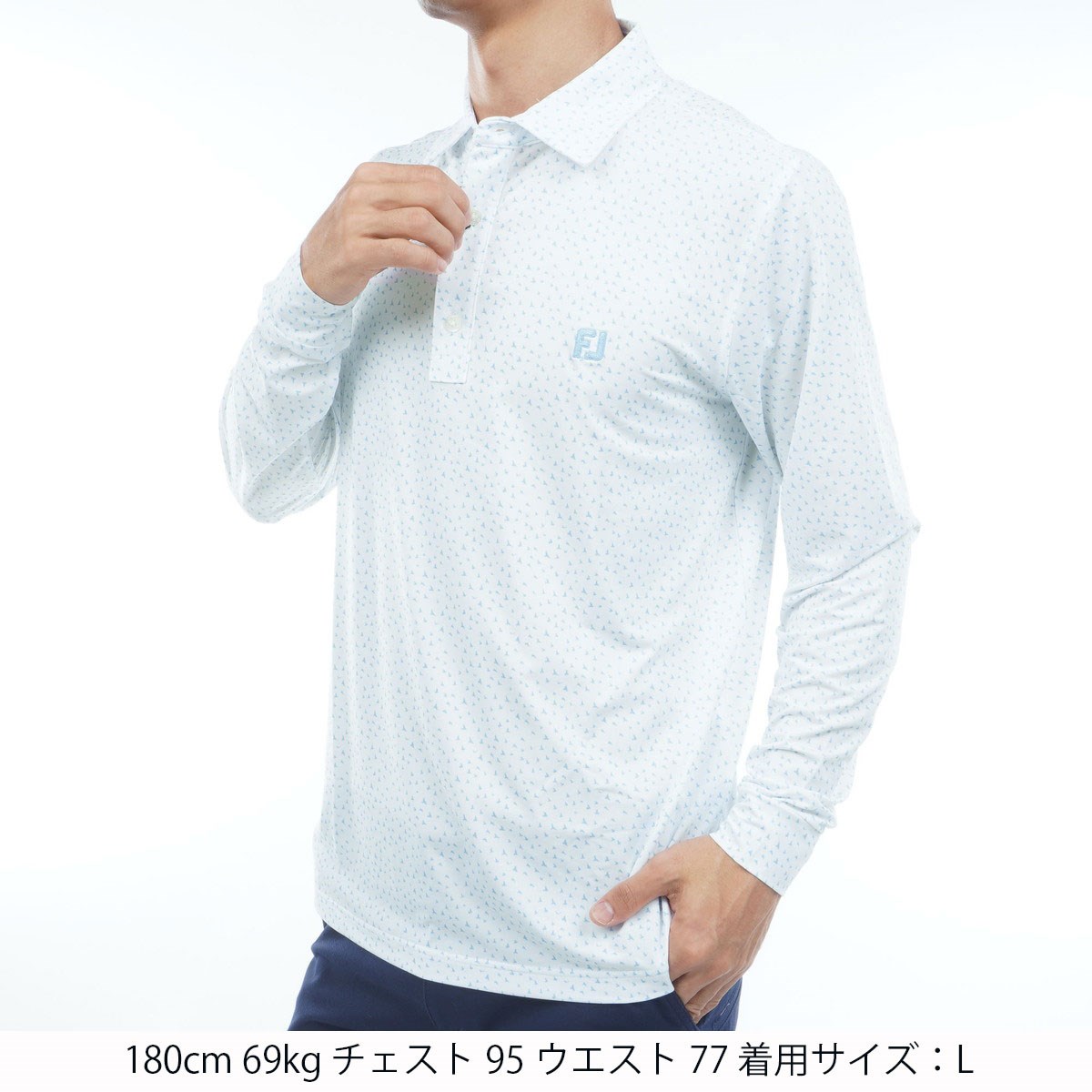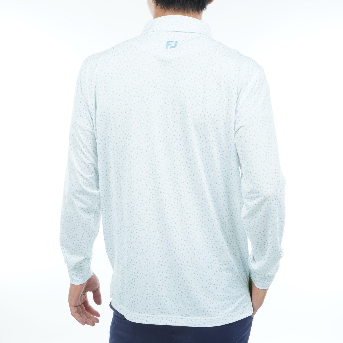 フットジョイ Foot Joy ストレッチ バードプリント長袖ポロシャツ L ホワイト/エアブルー