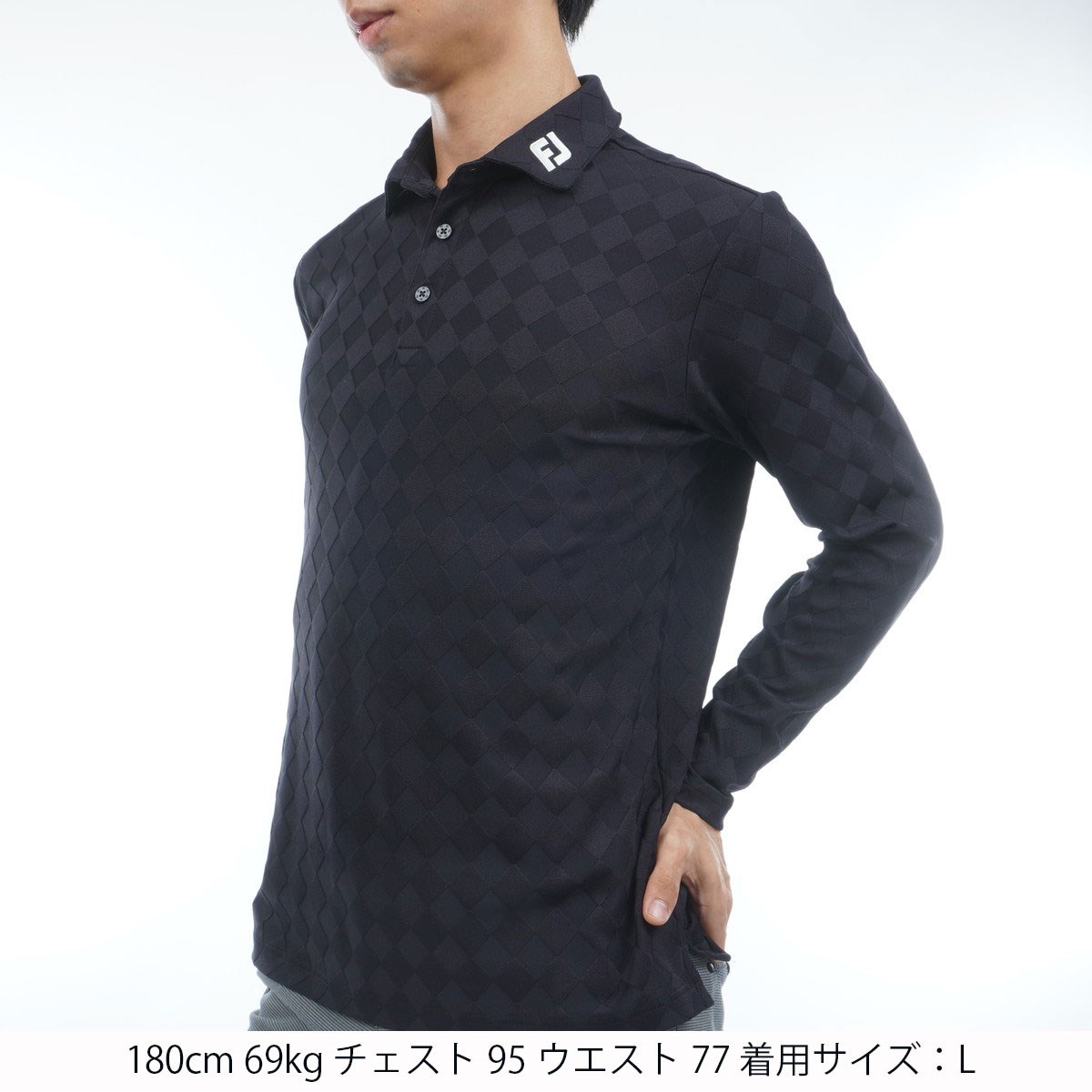 フットジョイ Foot Joy ストレッチ アーガイルジャカード 長袖ポロシャツ L ブラック