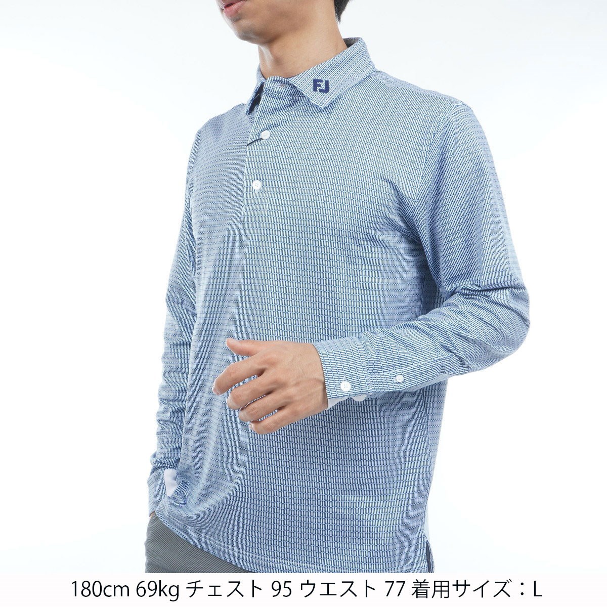 フットジョイ Foot Joy ストレッチ ティープリント 裏起毛長袖ポロシャツ XL ハイタイド