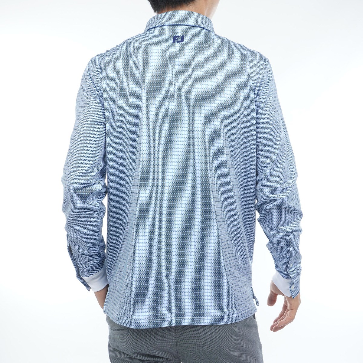 フットジョイ Foot Joy ストレッチ ティープリント 裏起毛長袖ポロシャツ L ネイビー