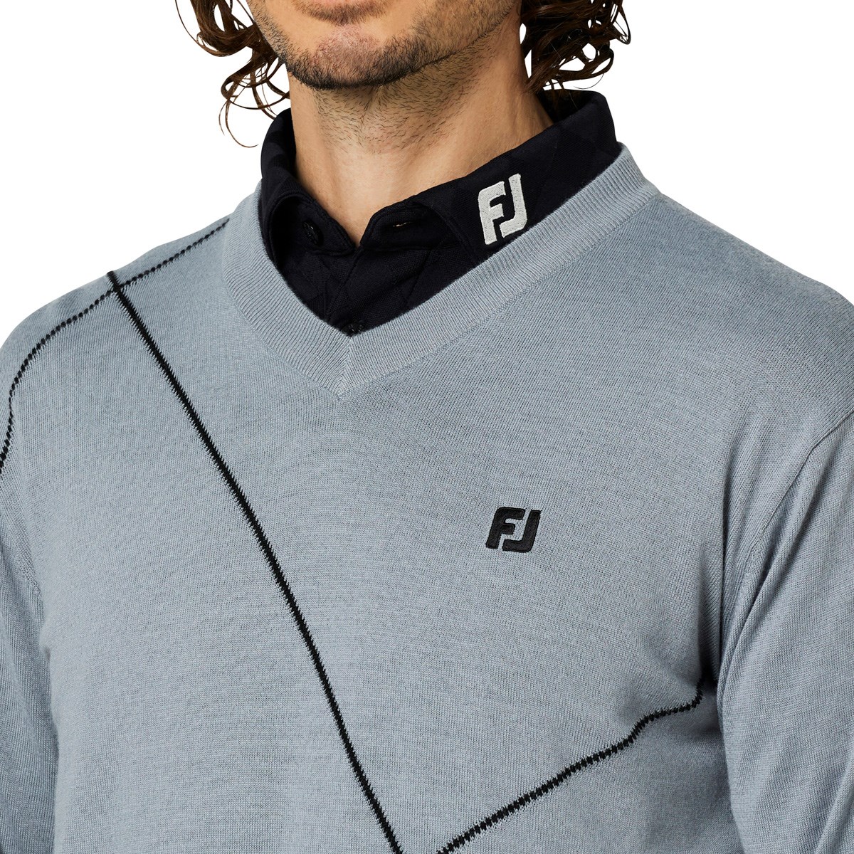 フットジョイ Foot Joy ストレッチ クロップドアーガイル Vネックセーター L ホワイト