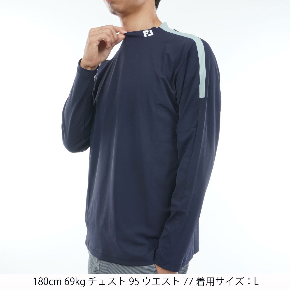 フットジョイ Foot Joy ストレッチ ショルダーライン モックネック長袖シャツ M ダークネイビー
