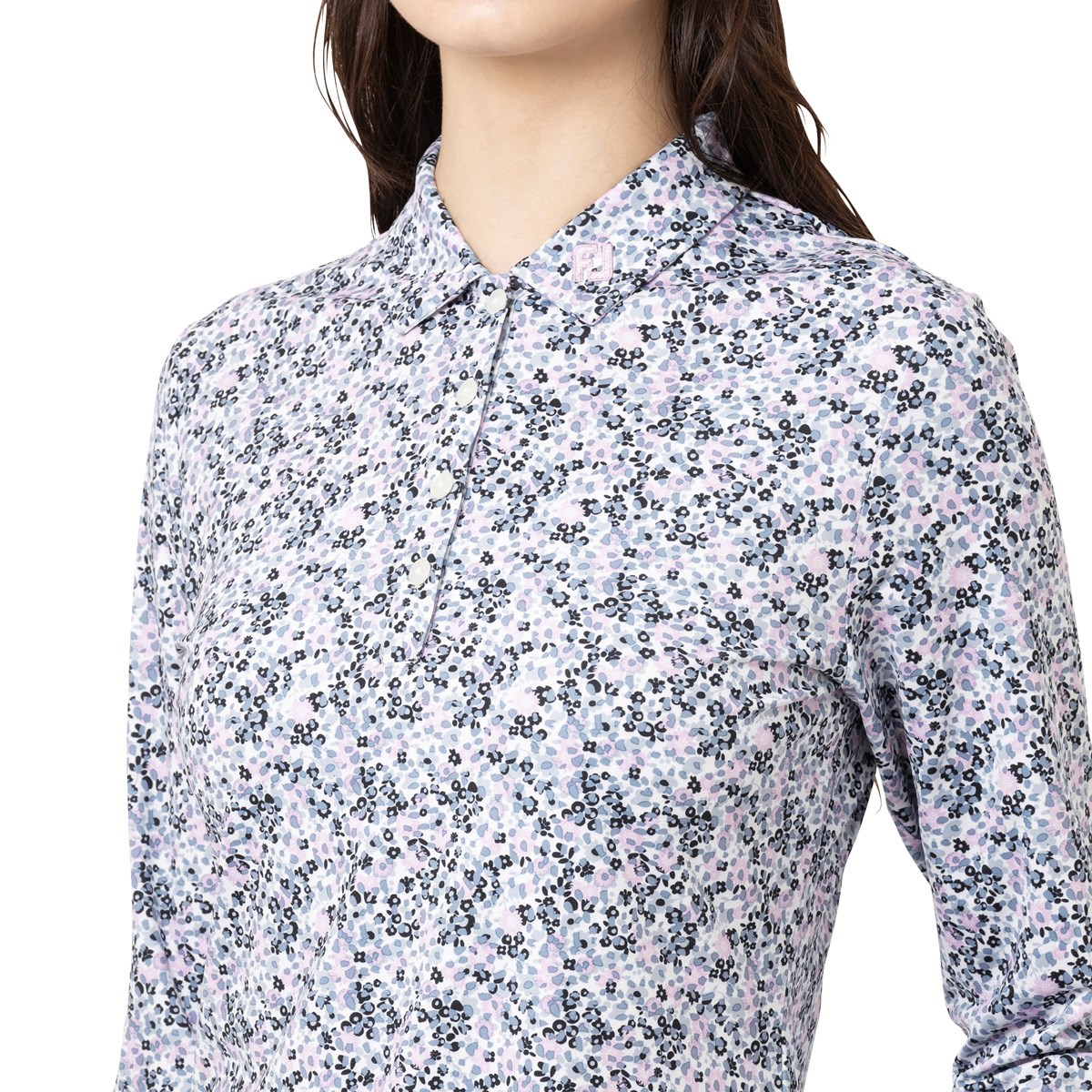 フットジョイ Foot Joy ストレッチ 水彩フラワープリント 長袖ポロシャツ M パステル レディス