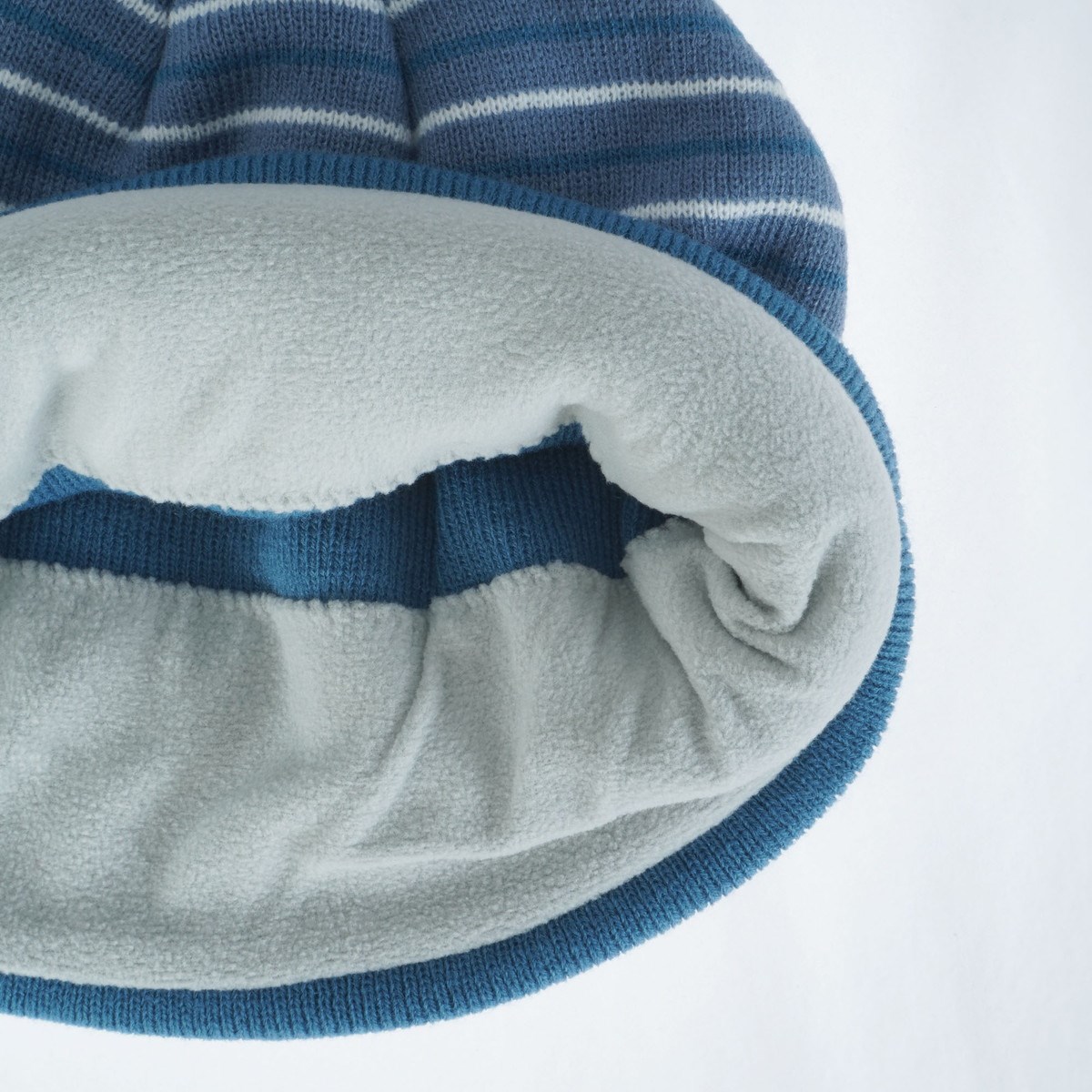 このストライプ柄のボンボンビーニーは、機能だけでなくデザイン性も追求しました。