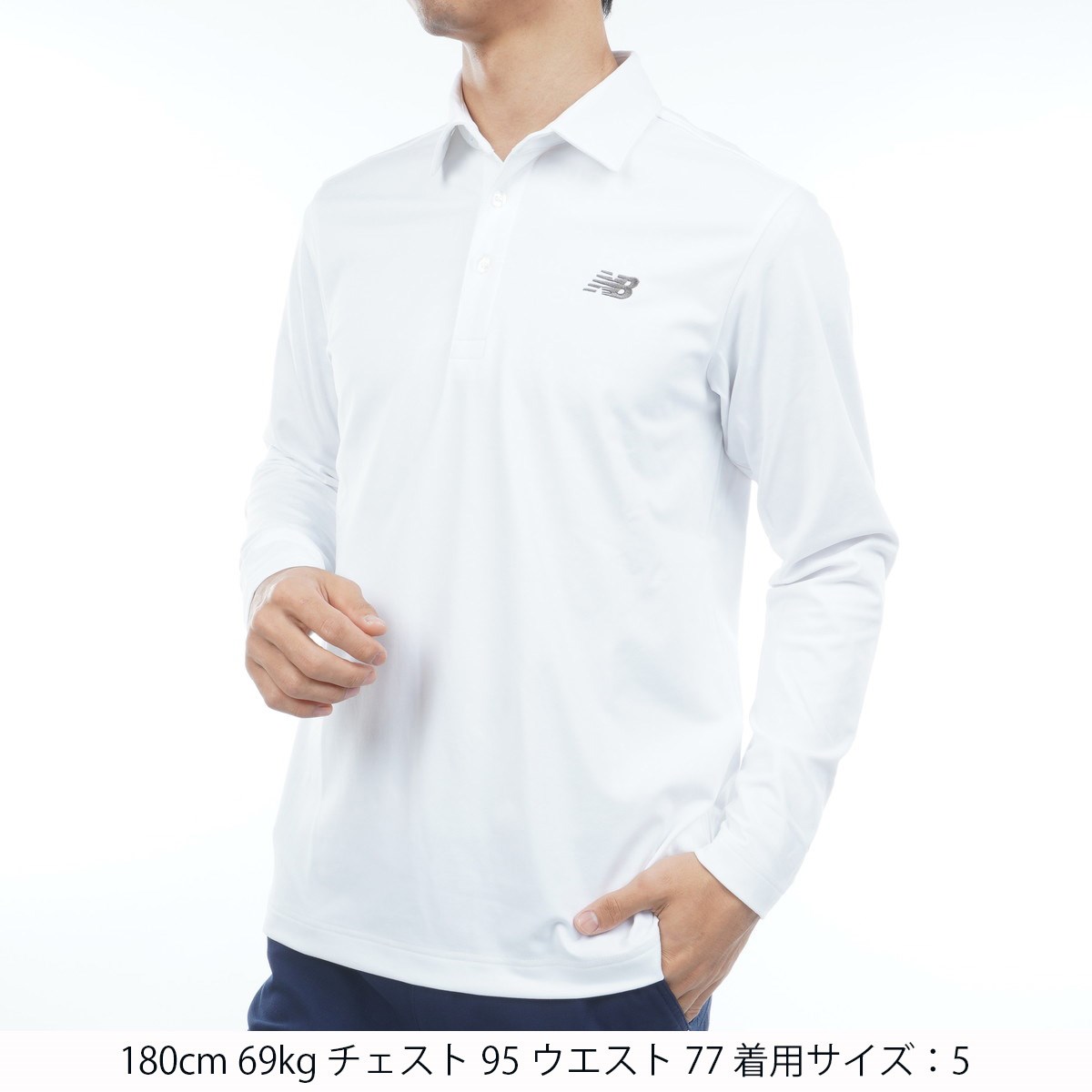 ニューバランス New Balance スムース両面ピーチ ロゴエンボス 長袖共衿ポロシャツ 4 ホワイト