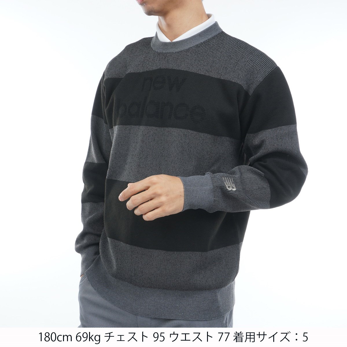 ニューバランス New Balance 針抜リブ×ロゴダブルジャカード ストレッチ クルーネックニットプルオーバー 6 ブラック