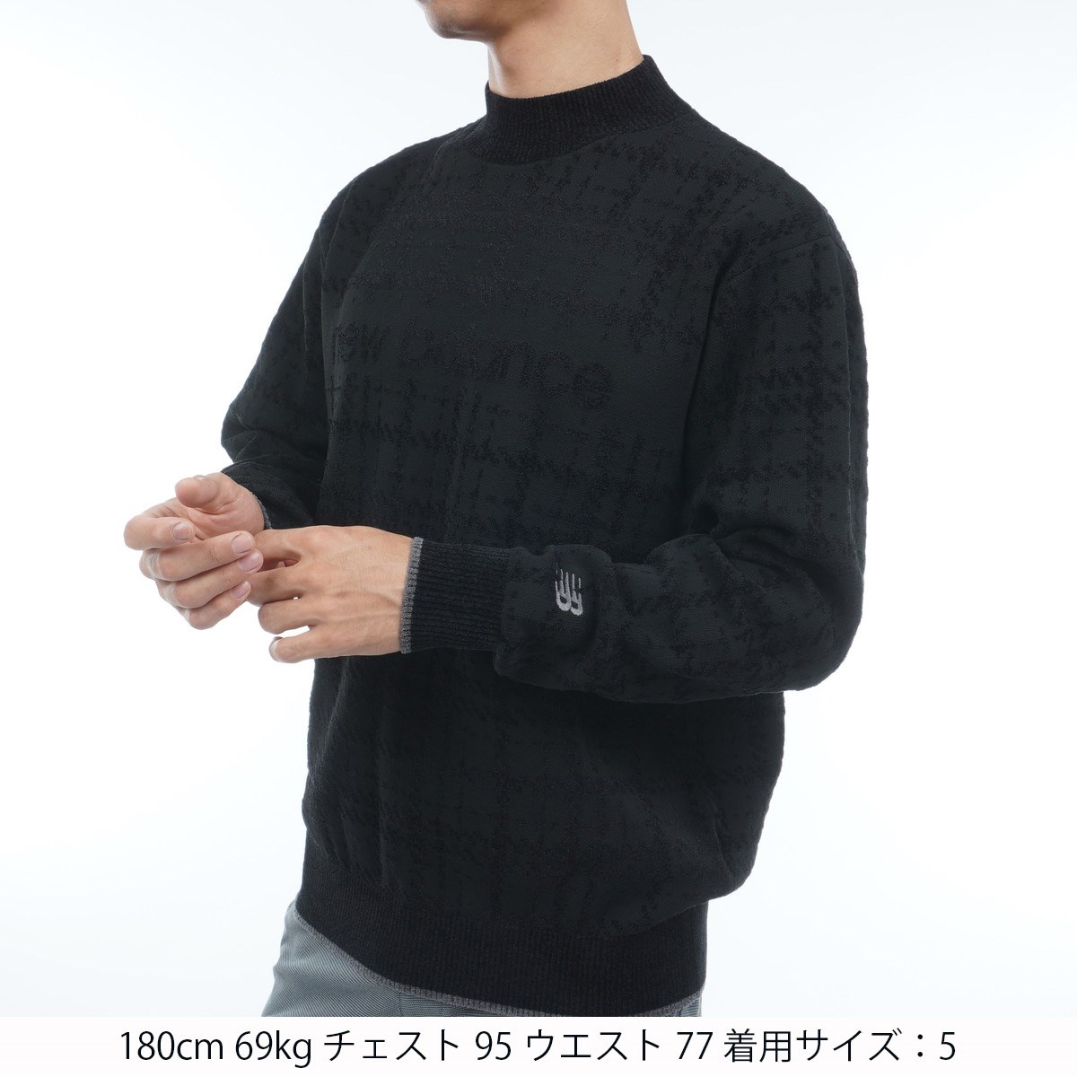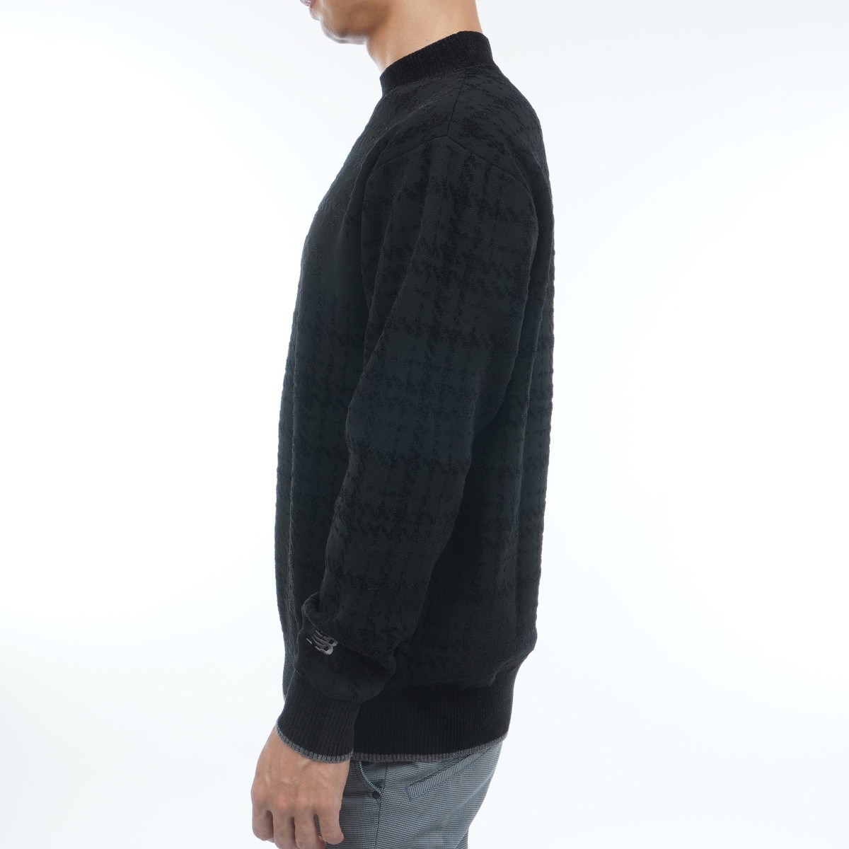 ニューバランス New Balance グレンチェックダブルジャカード ストレッチ モックネックニットプルオーバー 7 ブラック
