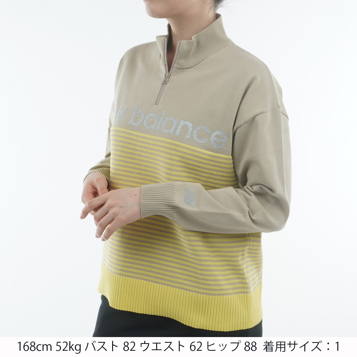 ニューバランス New Balance 天竺編み ロゴダブルジャカード ハーフジップ プルオーバーセーター 0 ベージュ レディス