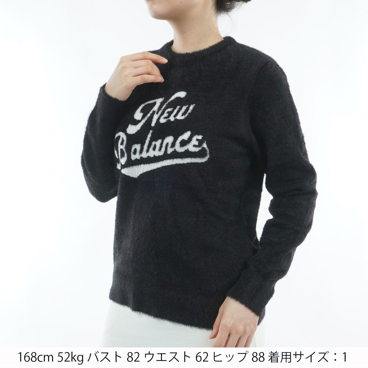 ニューバランス New Balance 天竺編み ロゴダブルジャカード クルーネック プルオーバーセーター 0 ブラック レディス