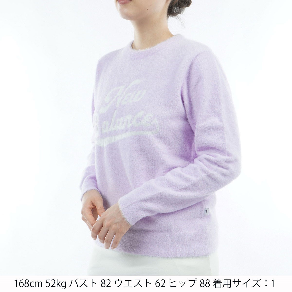 ニューバランス New Balance 天竺編み ロゴダブルジャカード クルーネック プルオーバーセーター 0 パープル レディス