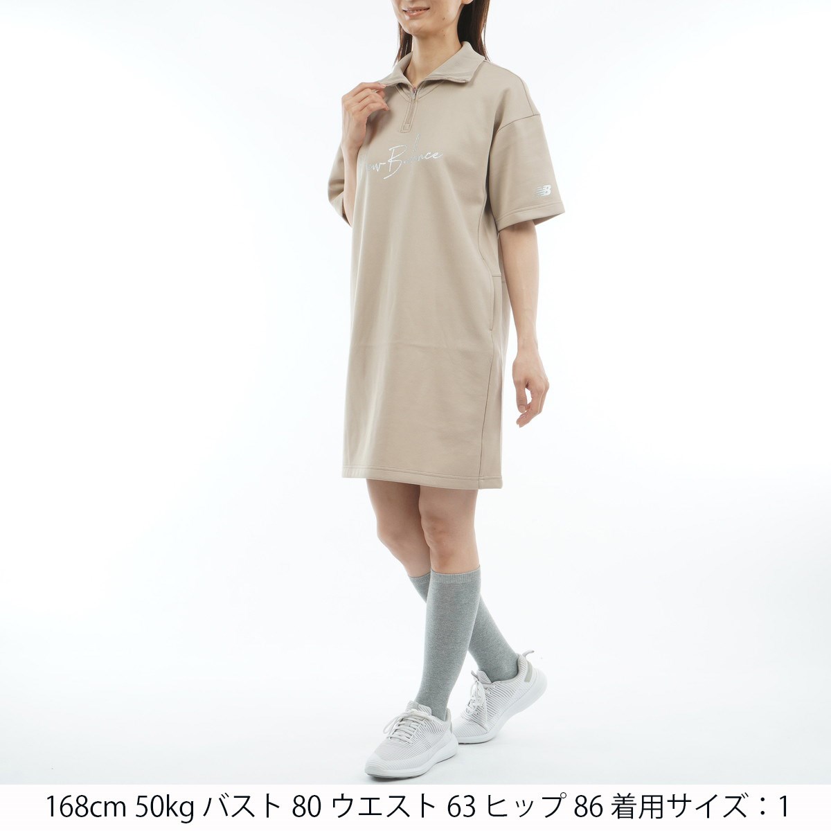 ニューバランス New Balance ダンボールスウェット ストレッチ ハーフジップワンピース 0 ベージュ レディス