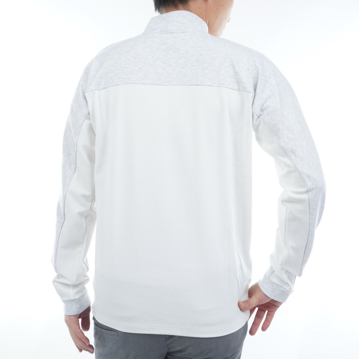 微配色のコンビでコーディネートに使いやすく、ウェアの脱ぎ着が多い冬のゴルフウェアに最適です。