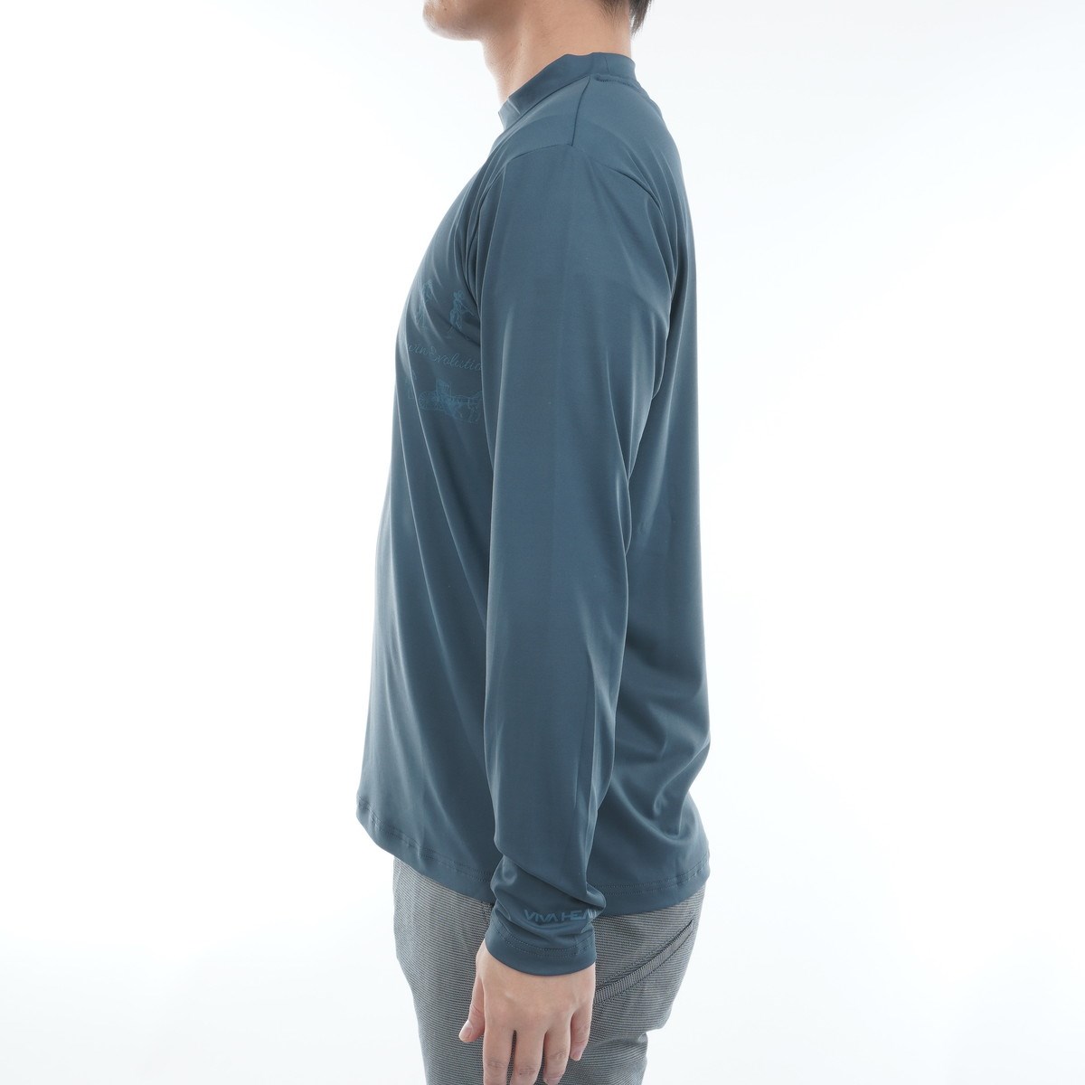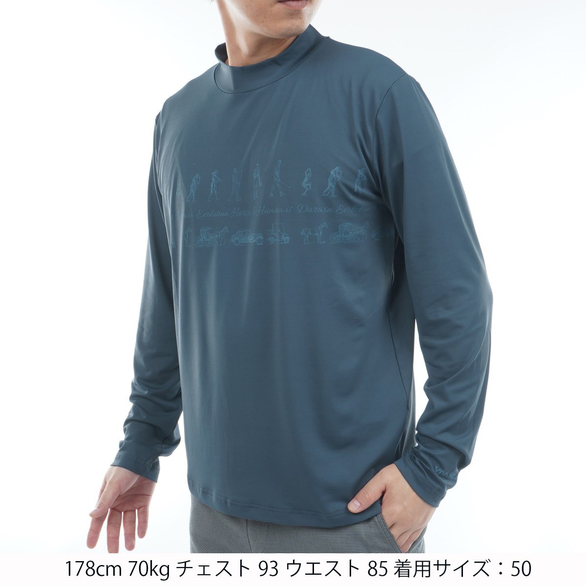 ビバハート VIVA HEART ストレッチ ダーウィン&ホース プリントモックネック長袖シャツ 48 ブルー 095