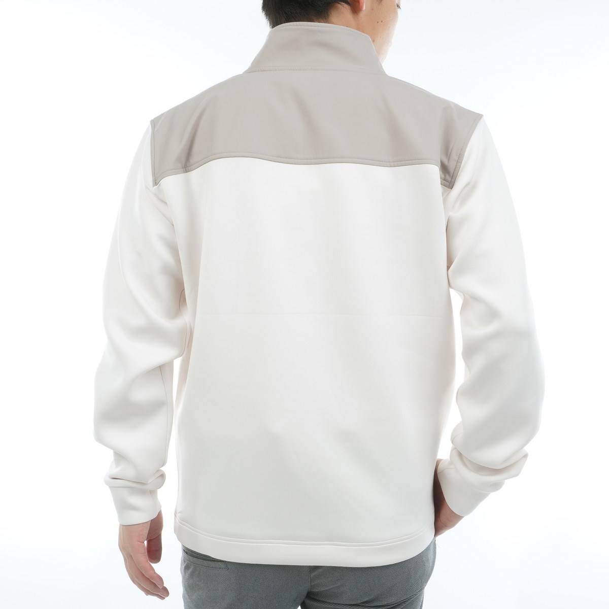 衿をシームレスの陸続きにする事で首周りがスッキリと見え、防寒ベストとのスタイリング相性も抜群です。