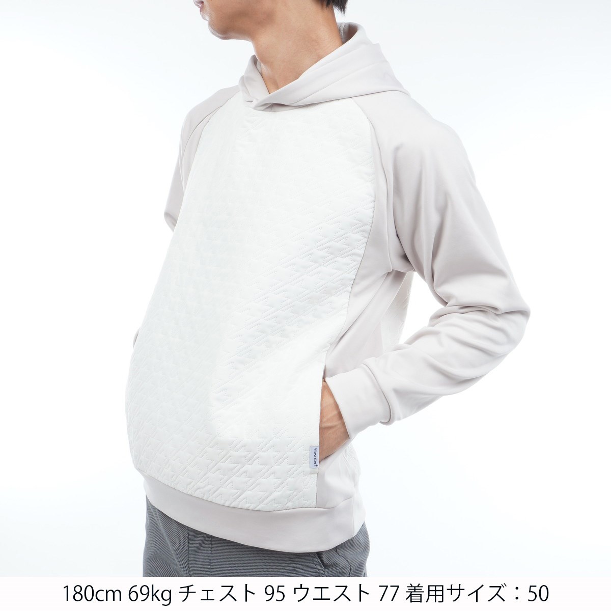 タフタ×中綿×オクトパスヤーンを千鳥格子柄でピンソニック加工した防寒に優れたフーディーです。