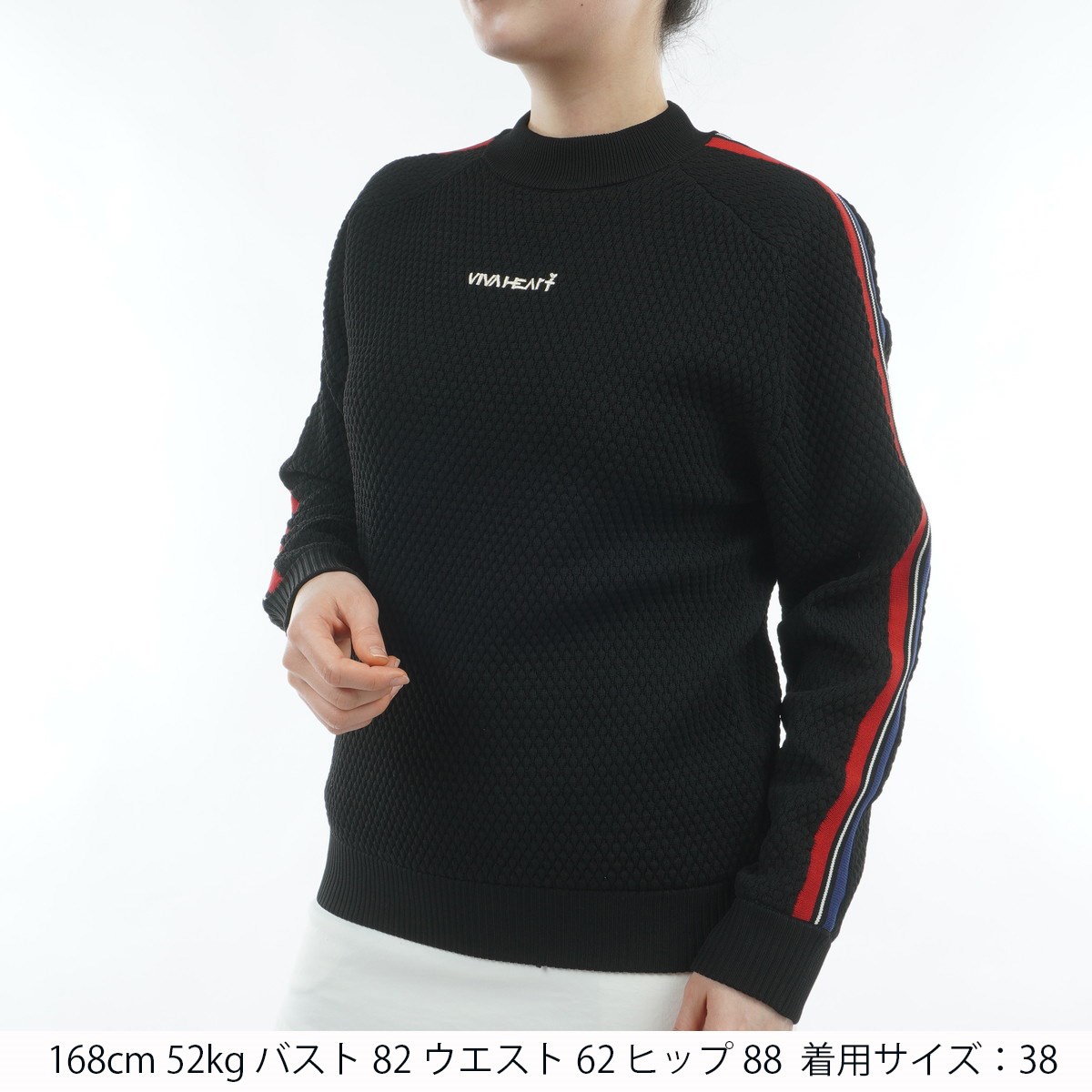 ビバハート VIVA HEART 裏地付き 配色ライン プルオーバーセーター 42 ブラック 019 レディス