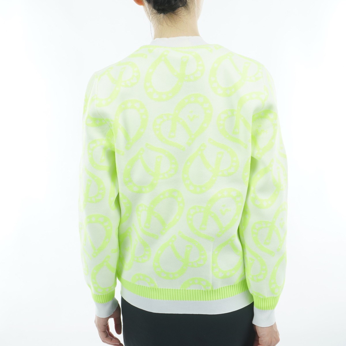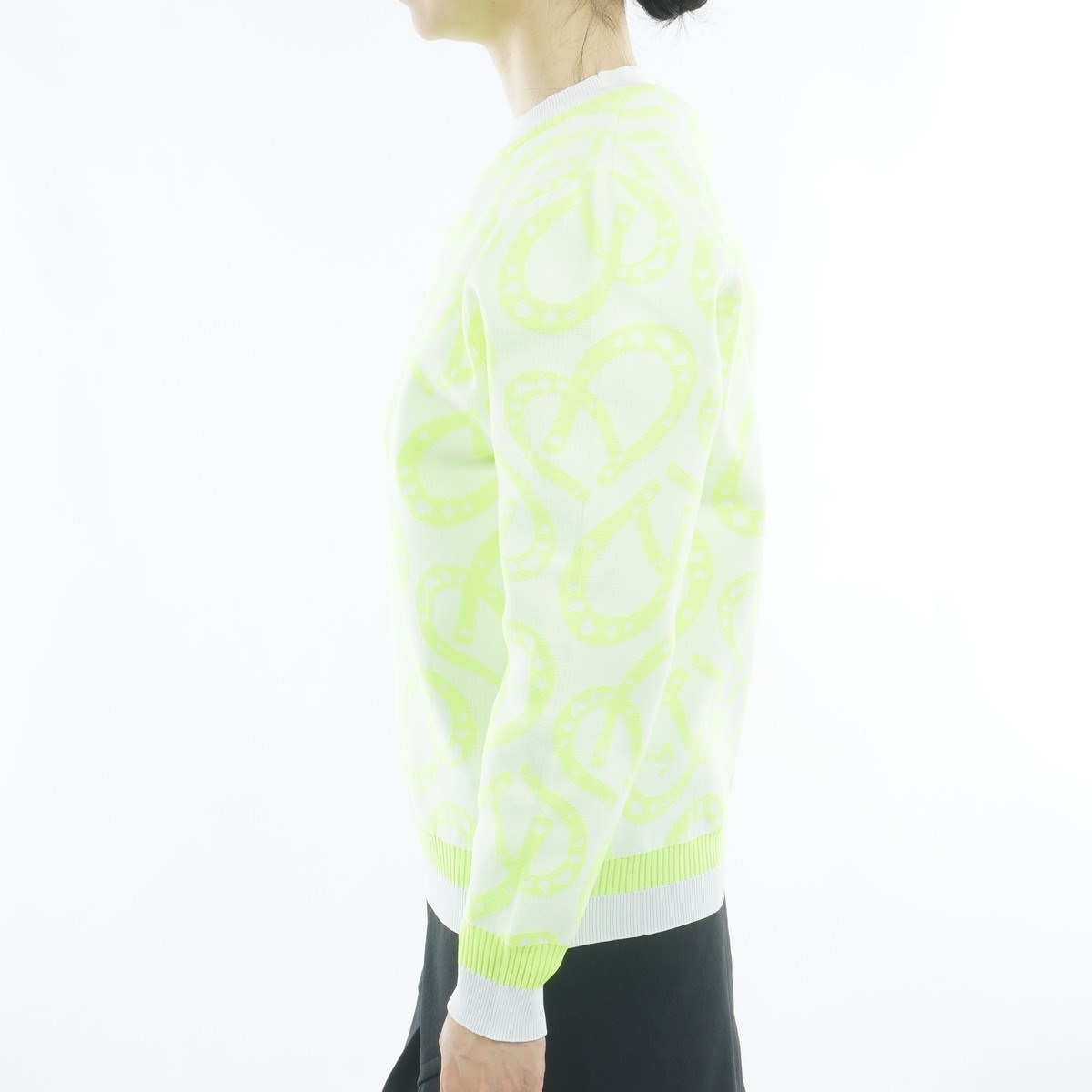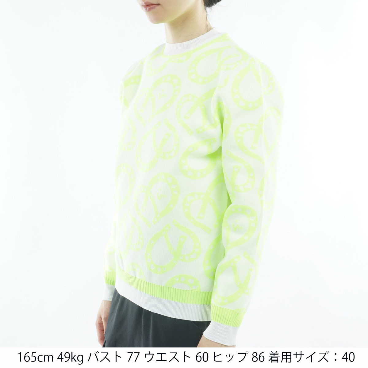 ロングシーズン着用可能なポリエステルニット糸を使用し、ゆったりとした着心地で秋冬のゴルフに嬉しい重ね着がしやすいリラックス感あるシルエットです。