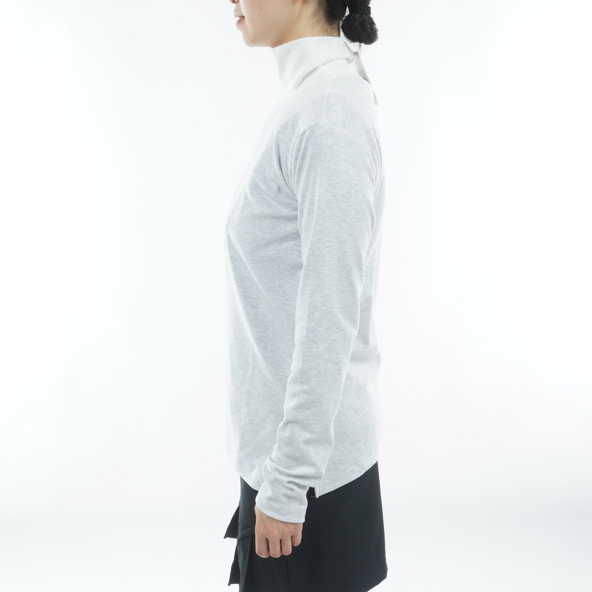 杢調とプレーンな素材がドッキングされることで単品・アウター着用どちらでもスタイリッシュな印象になります。