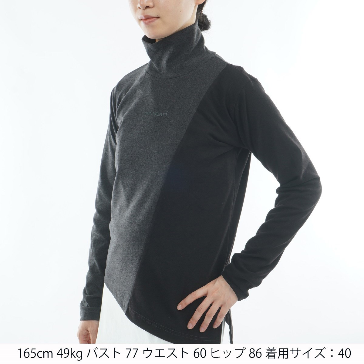 ビバハート VIVA HEART ストレッチ ニュアンスカラーデザイン切替 モックネックプルオーバー 40 ブラック 019 レディス
