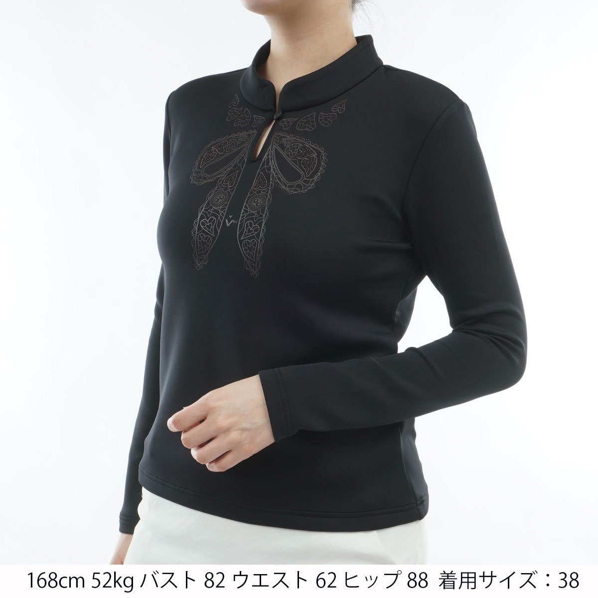 ビバハート VIVA HEART トロンプルイユ ボウタイ風モックネックプルオーバー 42 ブラック 019 レディス