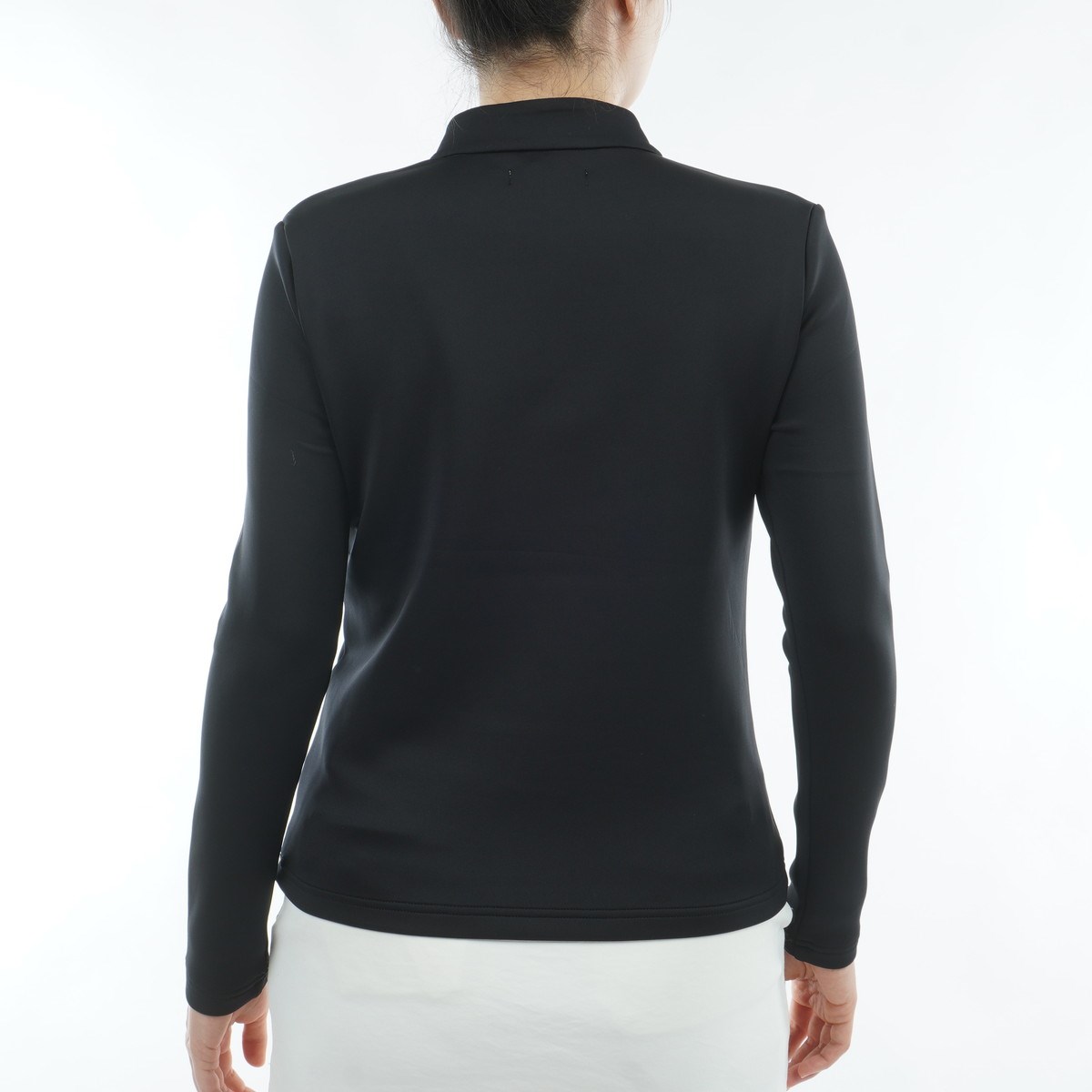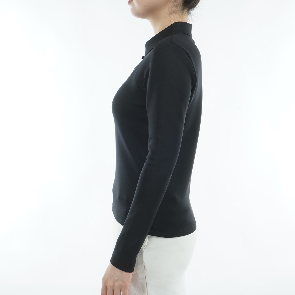 トロンプルイユ(=だまし絵)のボウタイ風デザインがポイントのモックネックトップス。