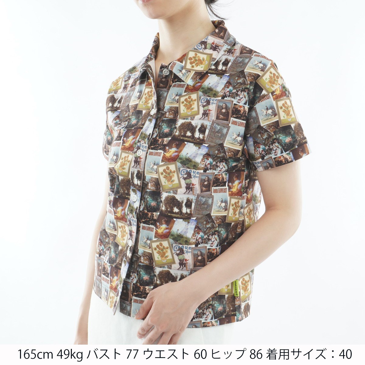 ビバハート VIVA HEART ストレッチ ミュゼドット柄 ゆったりオーバー半袖シャツ 42 ブラウン 043 レディス