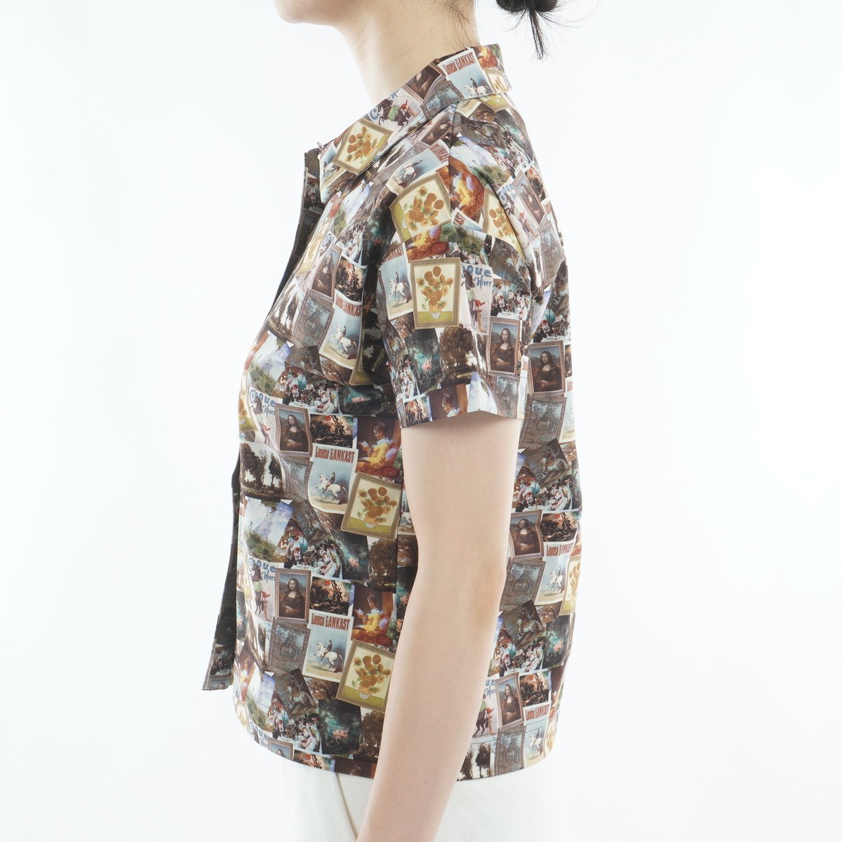 目を引く総柄がポイントのゆったりシルエットのオーバーシャツ。