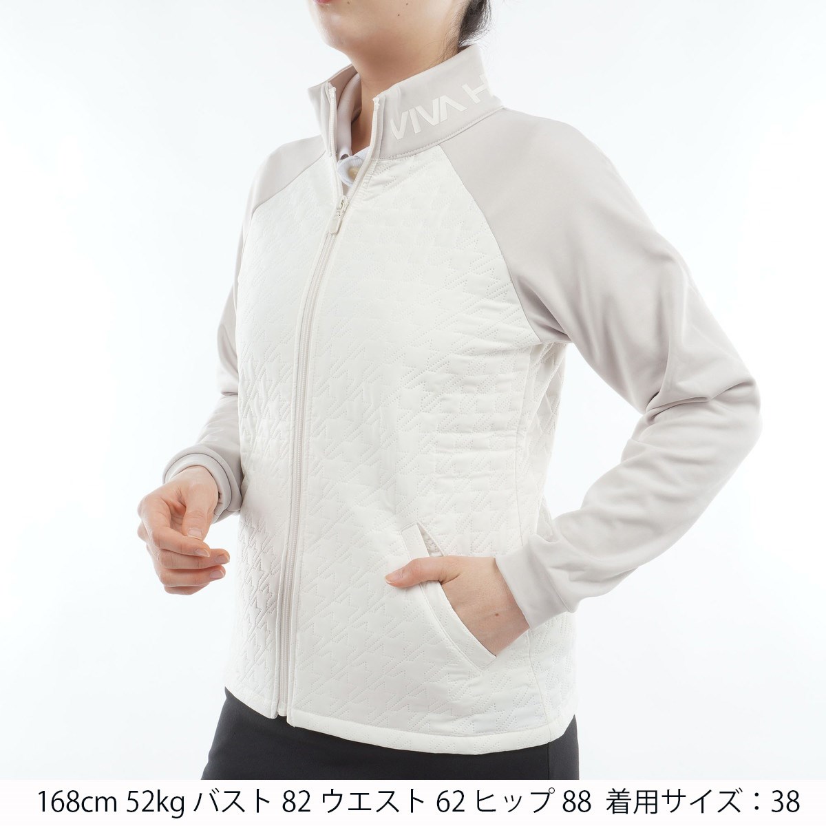 ビバハート VIVA HEART 裏起毛 千鳥格子柄 ピンソニック スタンドブルゾン 38 オフホワイト 005 レディス