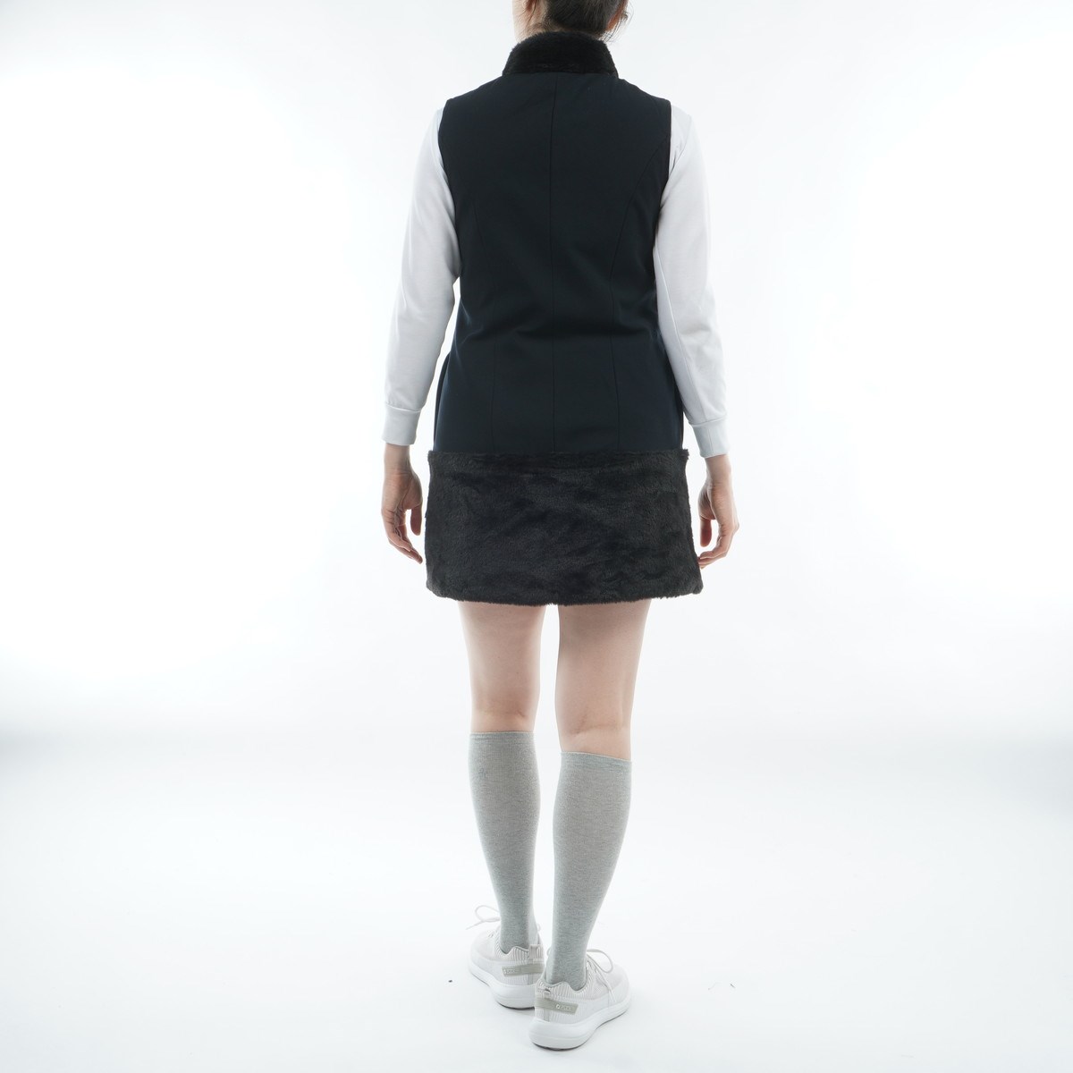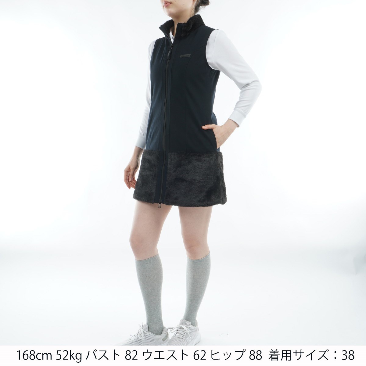 寒い冬のゴルフに、暖かなもこもこファーがポイントのロングジレワンピース。
