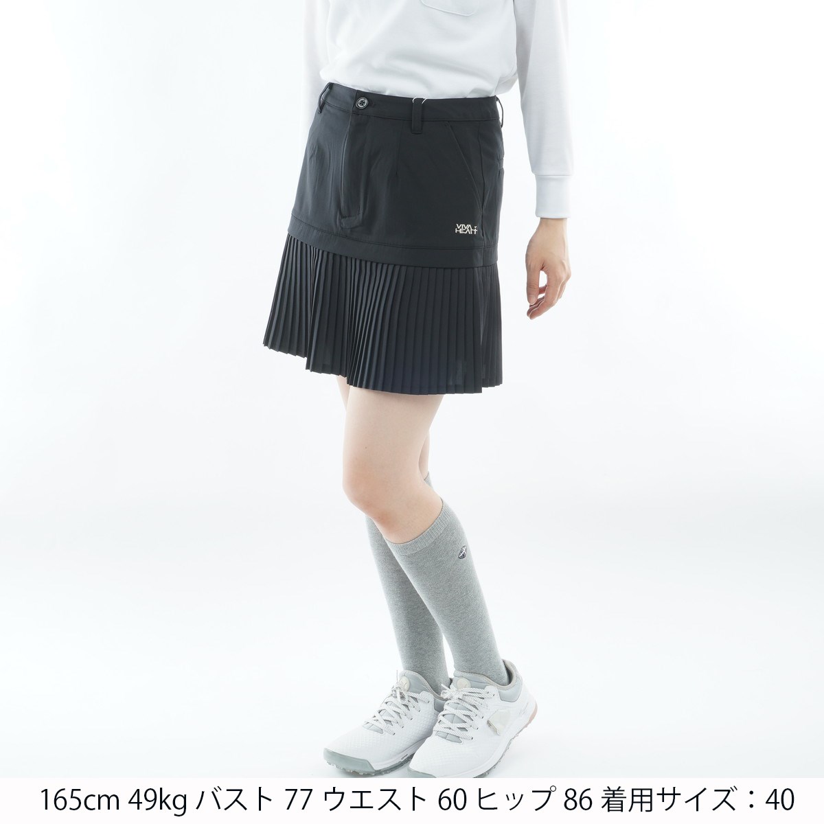 ビバハート VIVA HEART ストレッチ マイクロプリーツ ヨーク切替 スカート 42 ブラック 019 レディス