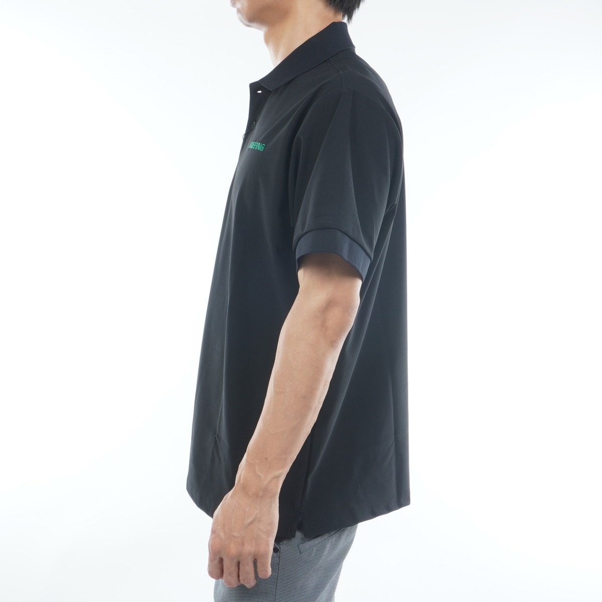 胸元や袖にはエコロジーを感じさせるグリーンカラーの刺繍を配した、エコフレンドリーなポロシャツ。