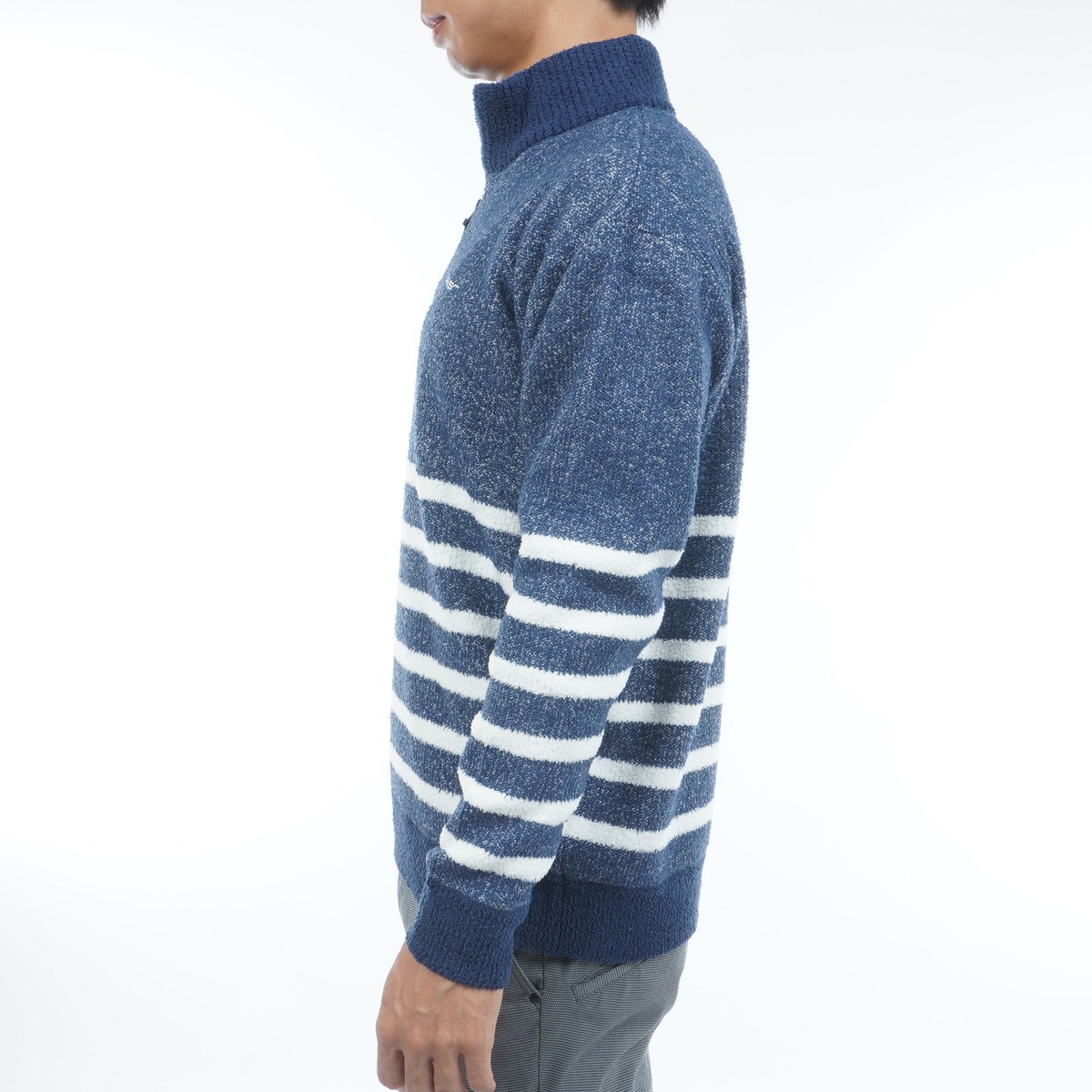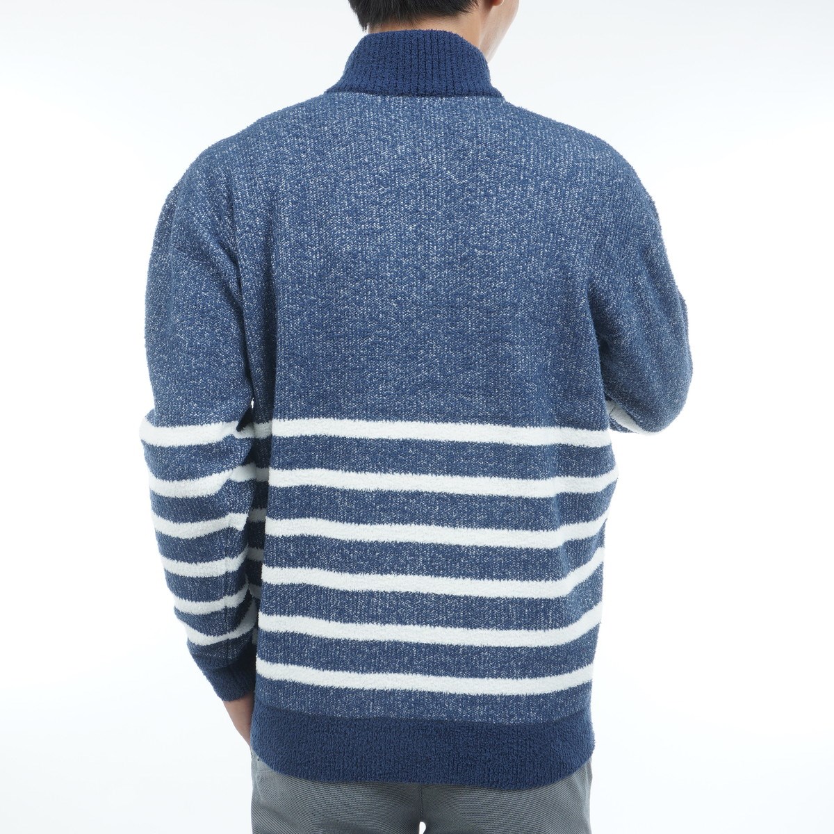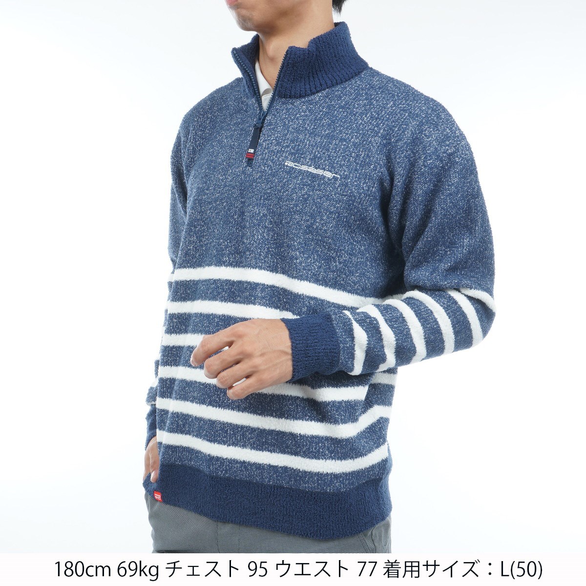 ロサーセン ROSASEN モールニット ボーダー ハーフジップハイネックセーター L(50) ブルー 96