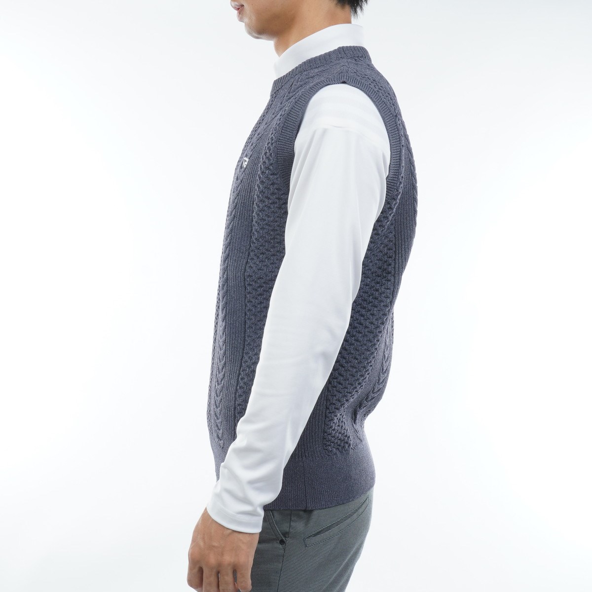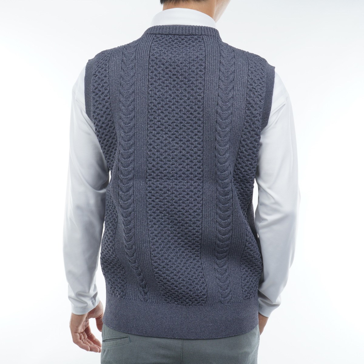 快適な着心地でスコアアップを目指す、ケーブル編みのゴルフベスト。