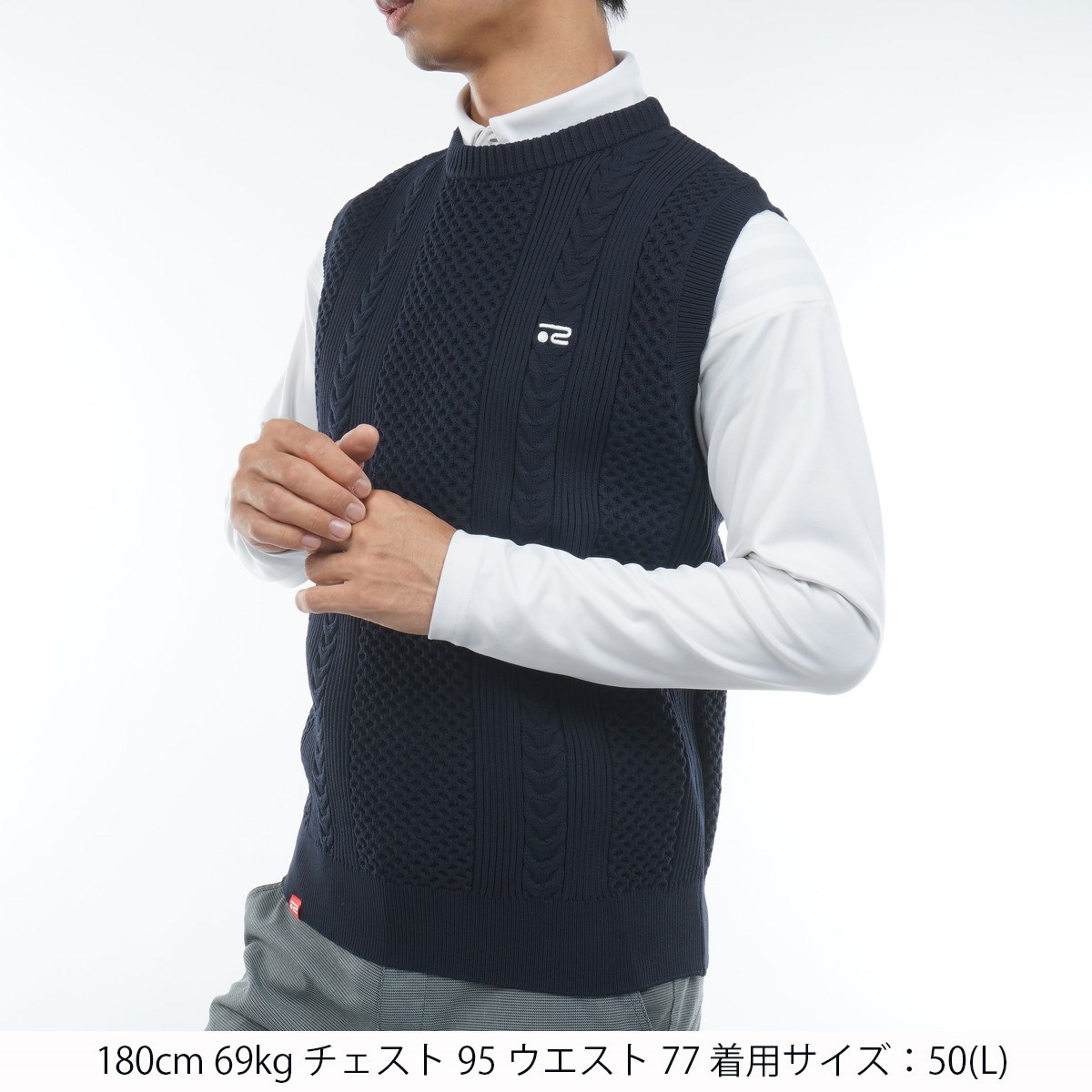 快適な着心地でスコアアップを目指す、ケーブル編みのゴルフベスト。
