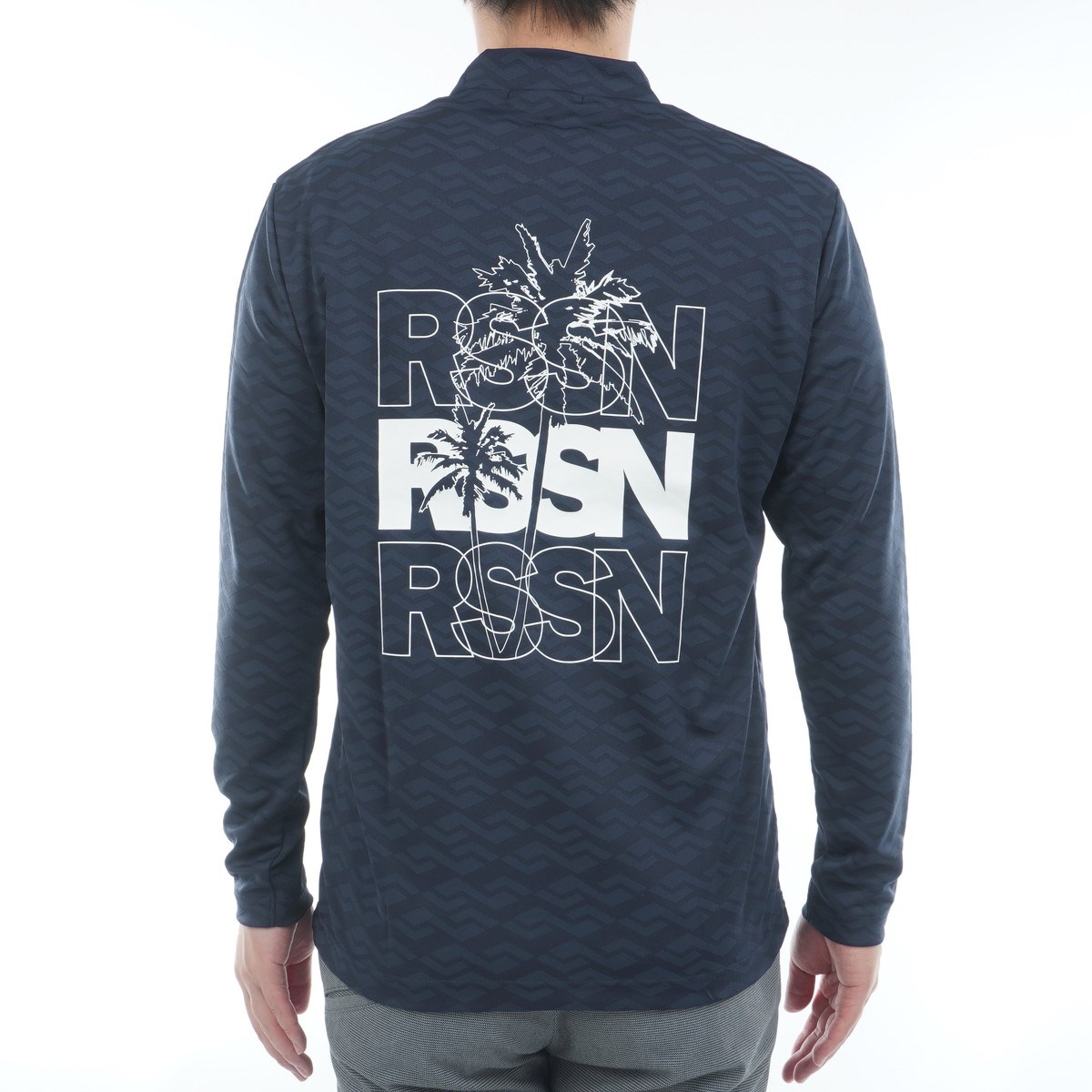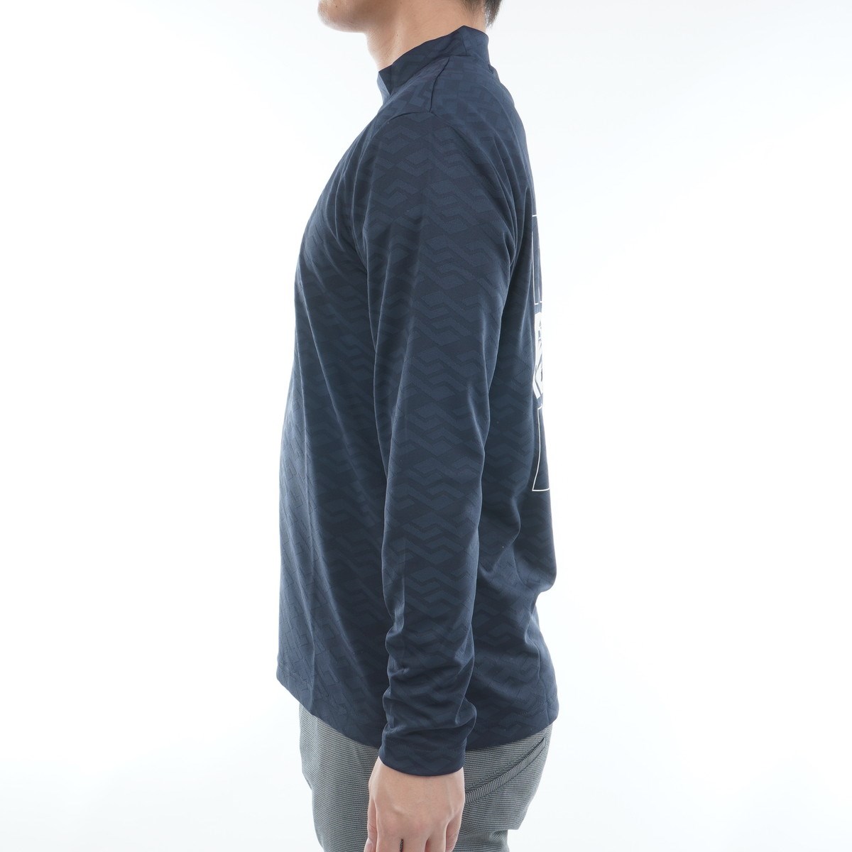 ロサーセン ROSASEN 幾何学柄 ジャカード モックネック長袖シャツ L(50) ネイビー 98