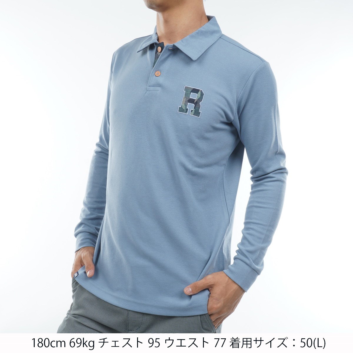 ロサーセン ROSASEN ストレッチ 鹿の子ダンボール ワッペン長袖ポロシャツ LL(52) ブルー 95