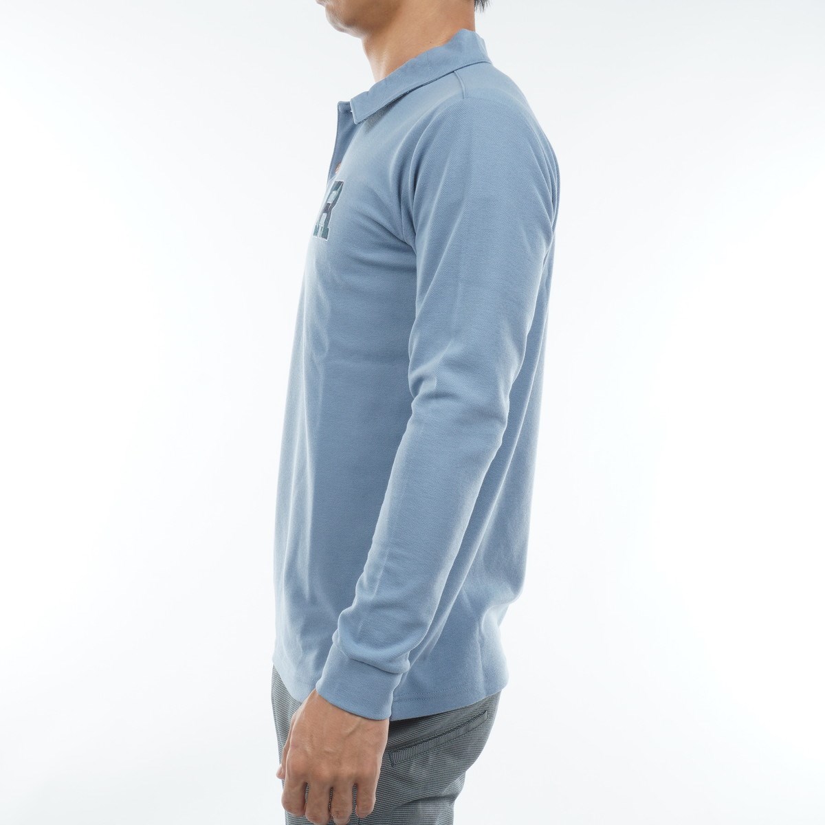 鹿の子ダンボール素材の長袖ゴルフポロシャツ。
