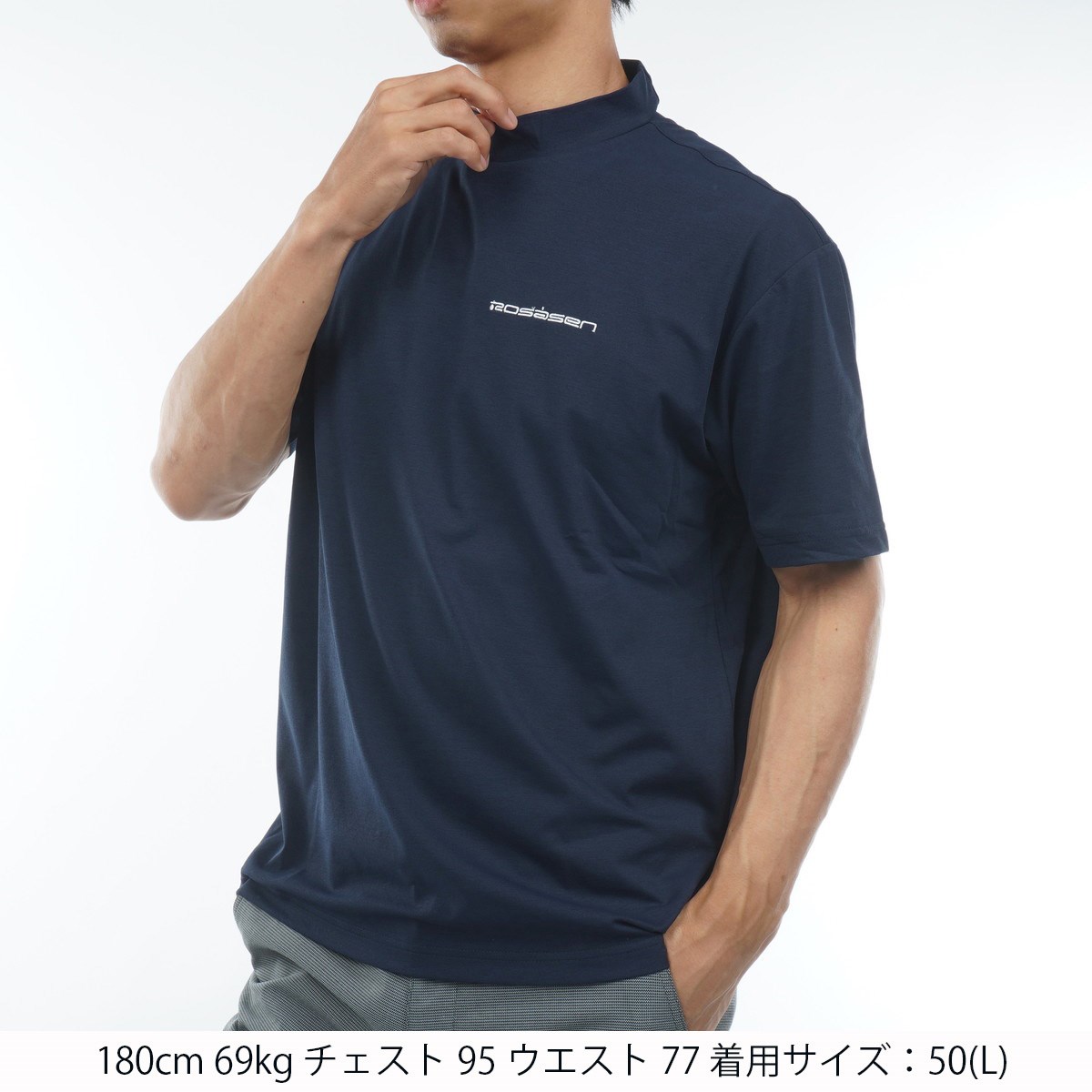 ロサーセン ROSASEN ストレッチ HERITECH BALL BOY ソロナ モックネック半袖シャツ LL(52) ネイビー 98