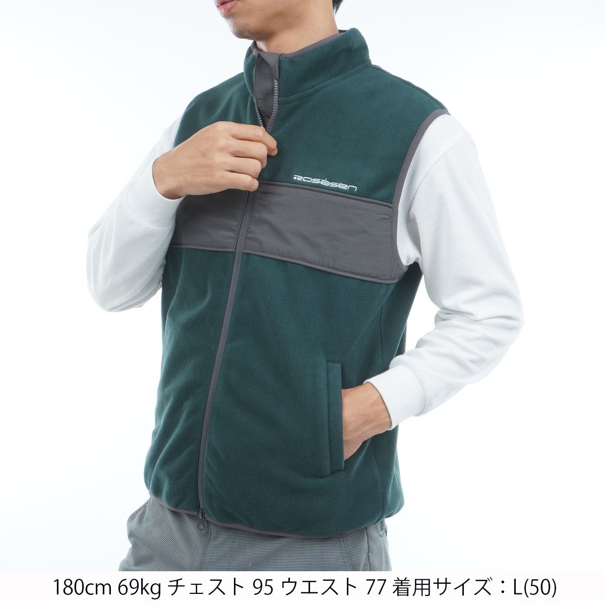 ロサーセン ROSASEN ウォームシールドフリース ストレッチ フルジップ切替ベスト LL(52) グリーン 23