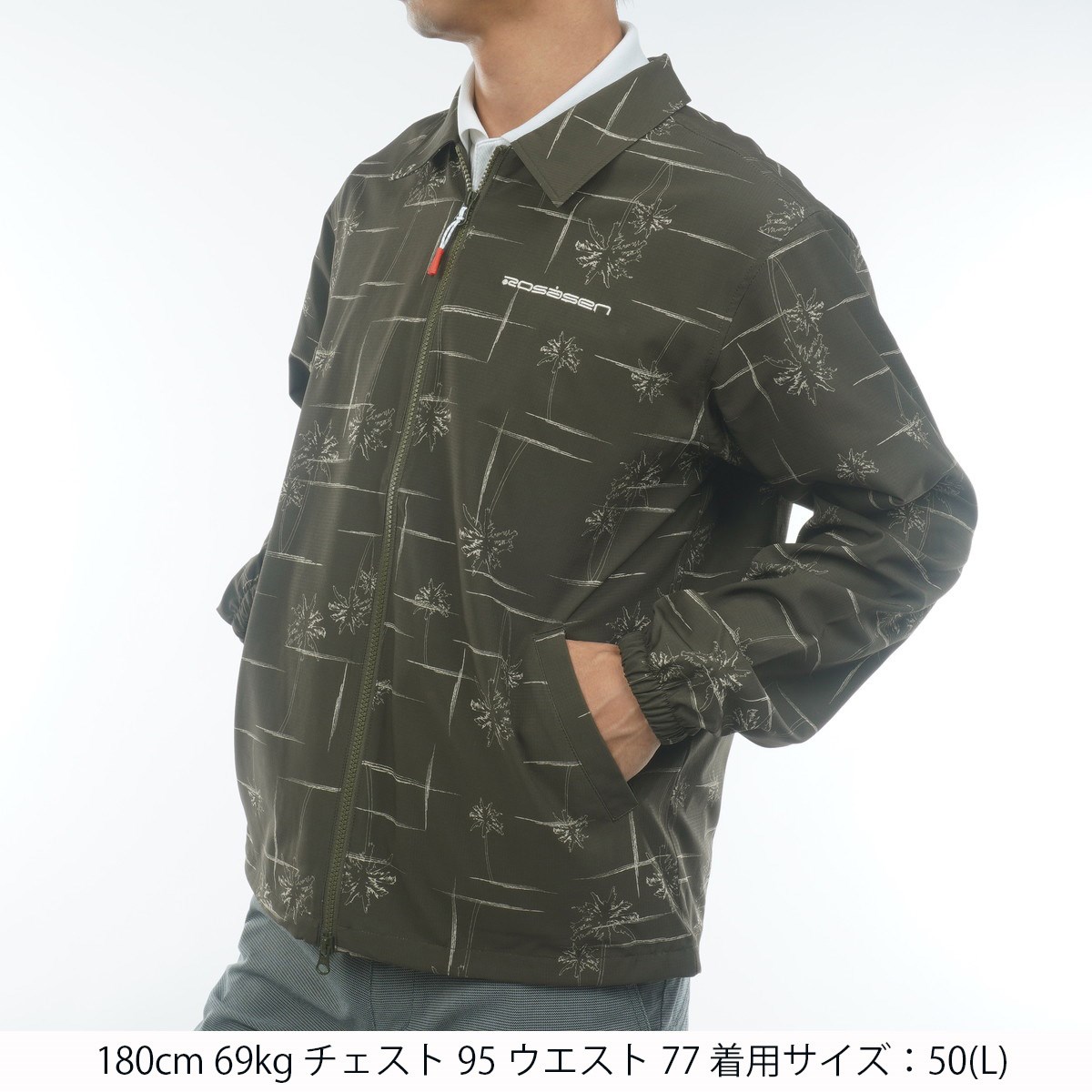 ロサーセン ROSASEN ストレッチ パームツリー柄 コーチジャケット M(48) カーキ 27