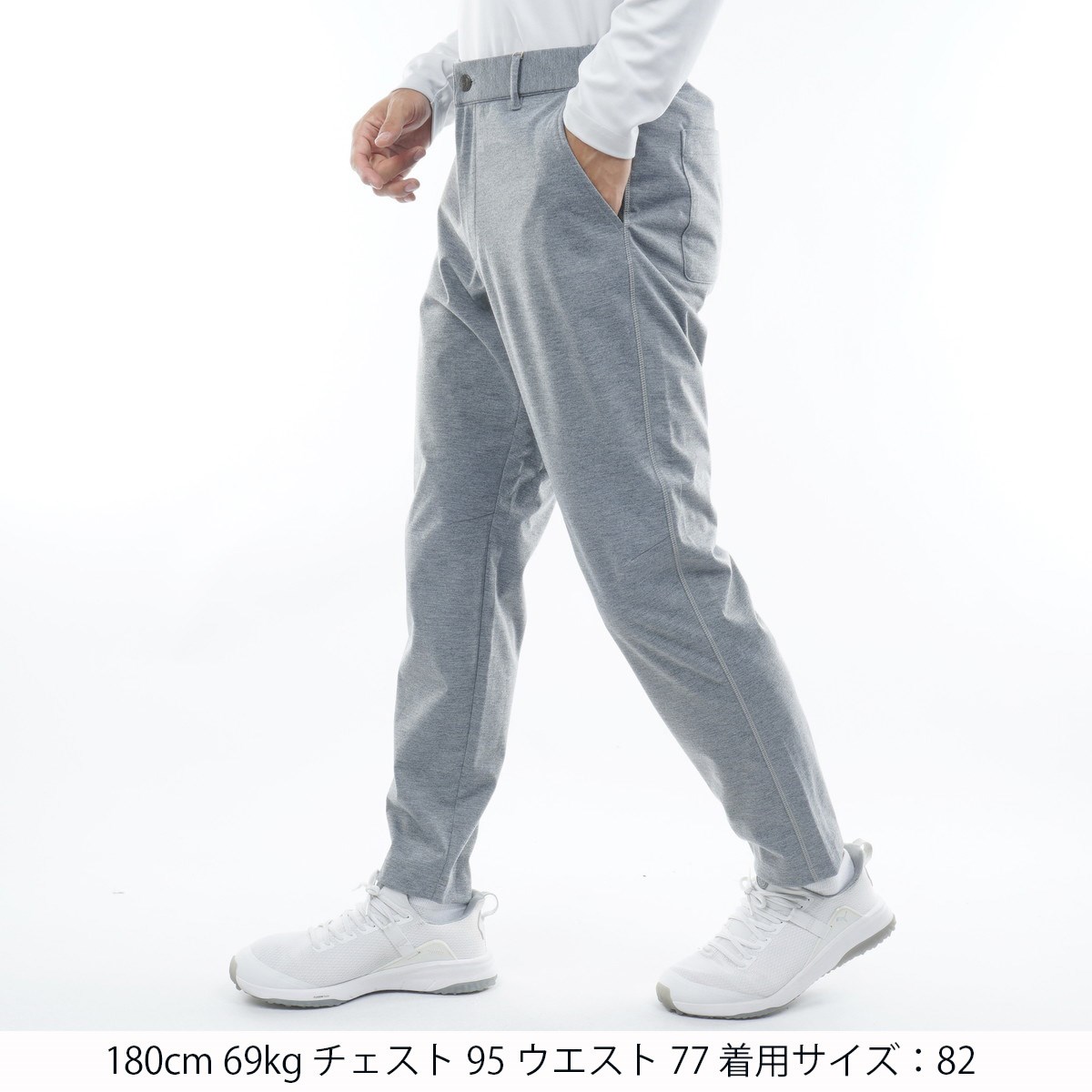 82:ウエスト(A)77、ウエスト(B)95、ヒップ102、股上27、股下72、わたり幅34