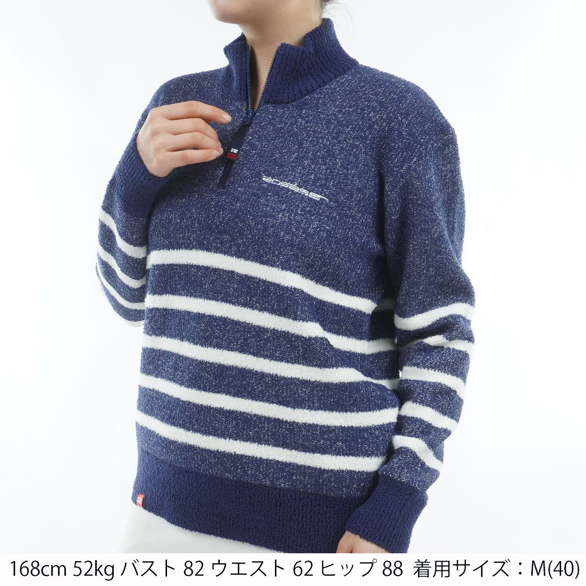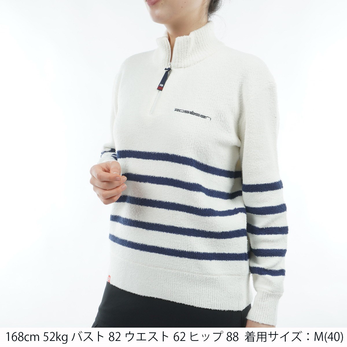 ロサーセン ROSASEN モールニット ボーダー ハーフジップハイネックセーター M(40) オフホワイト 05 レディス