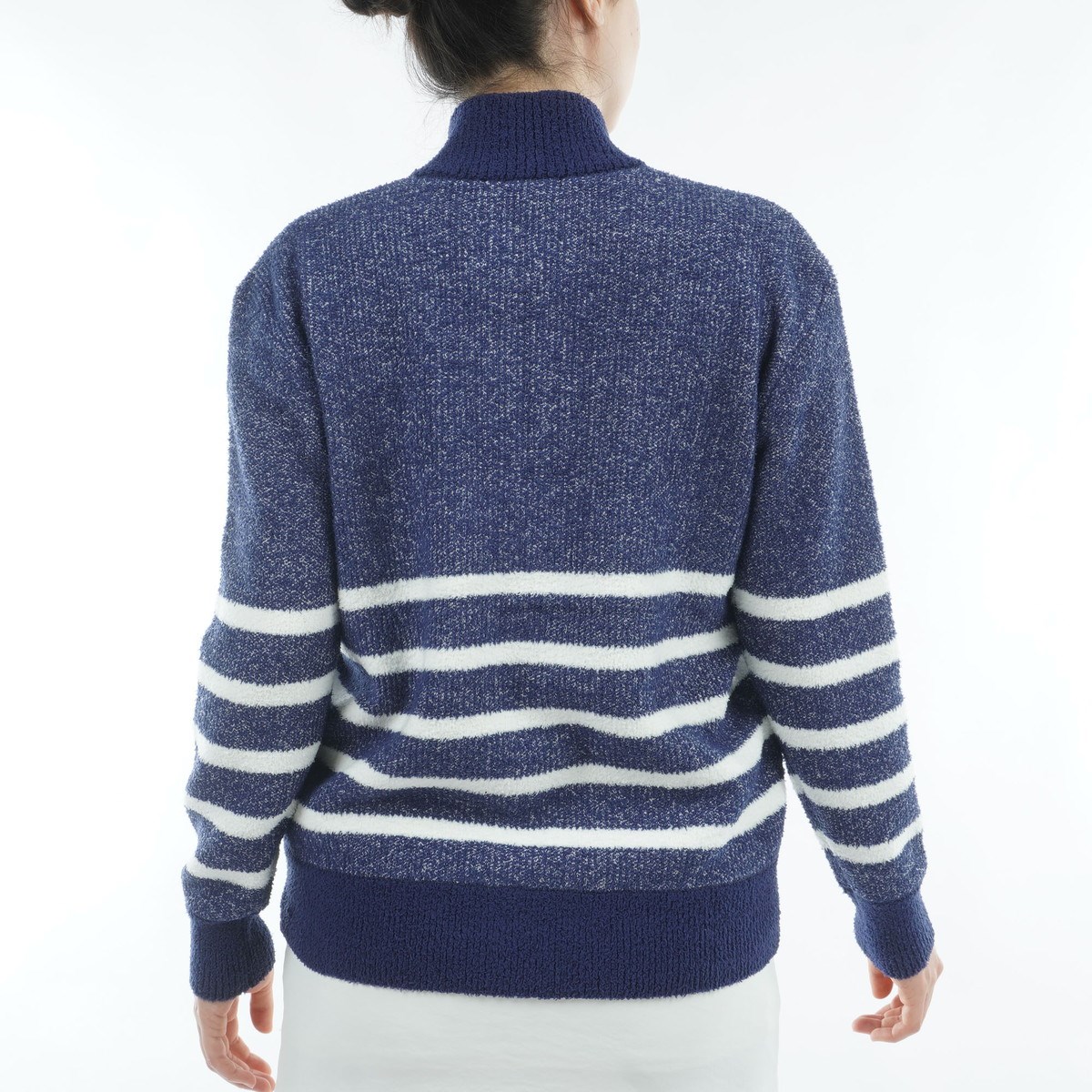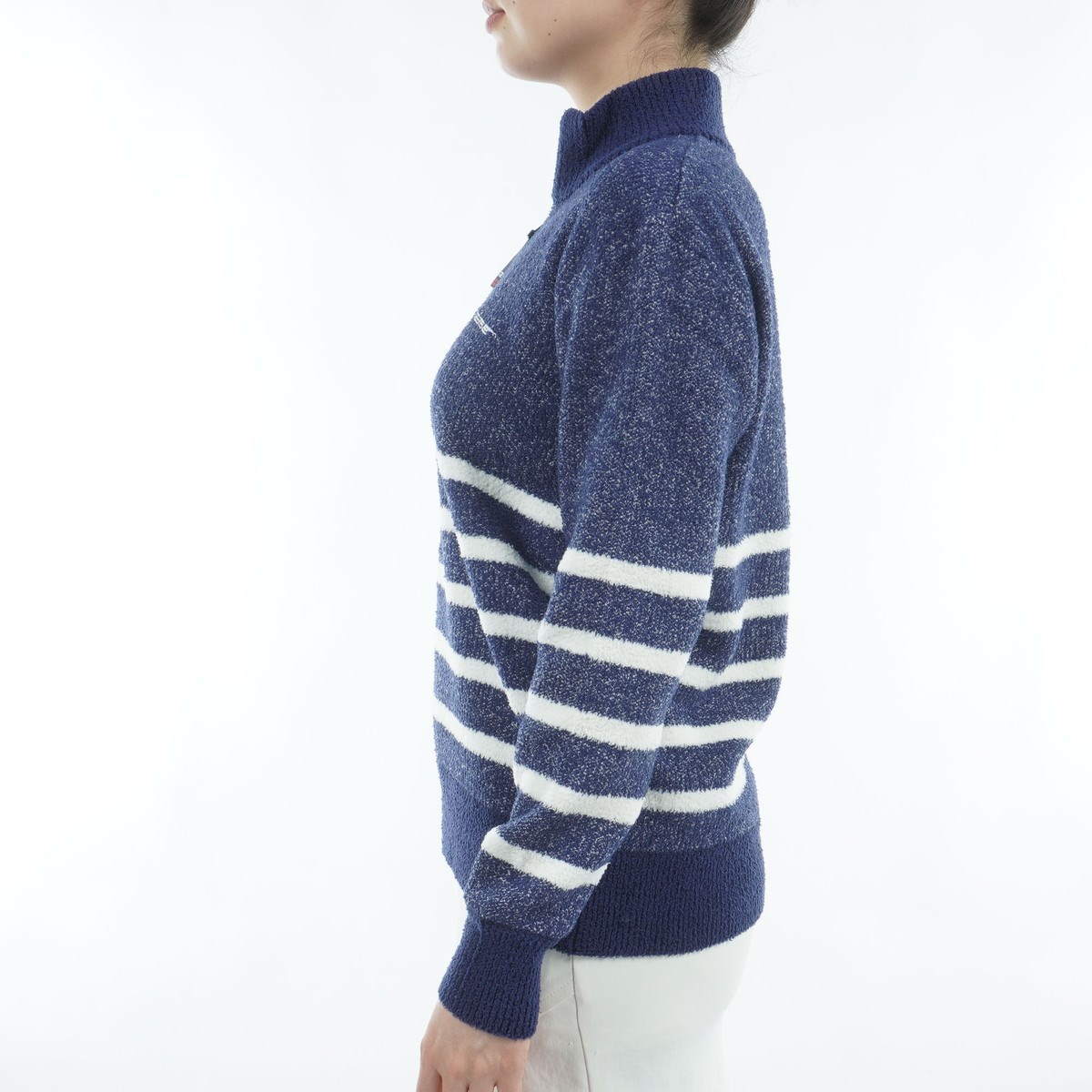 ロサーセン ROSASEN モールニット ボーダー ハーフジップハイネックセーター L(42) ブルー 96 レディス