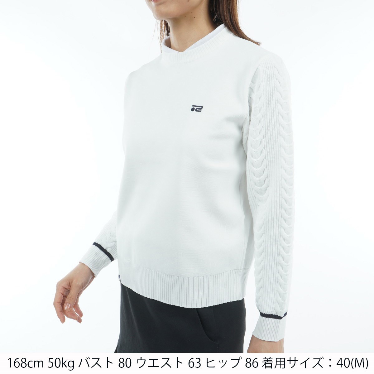 ロサーセン ROSASEN 軽量 ケーブル編み クルーネックセーター L(42) オフホワイト 05 レディス