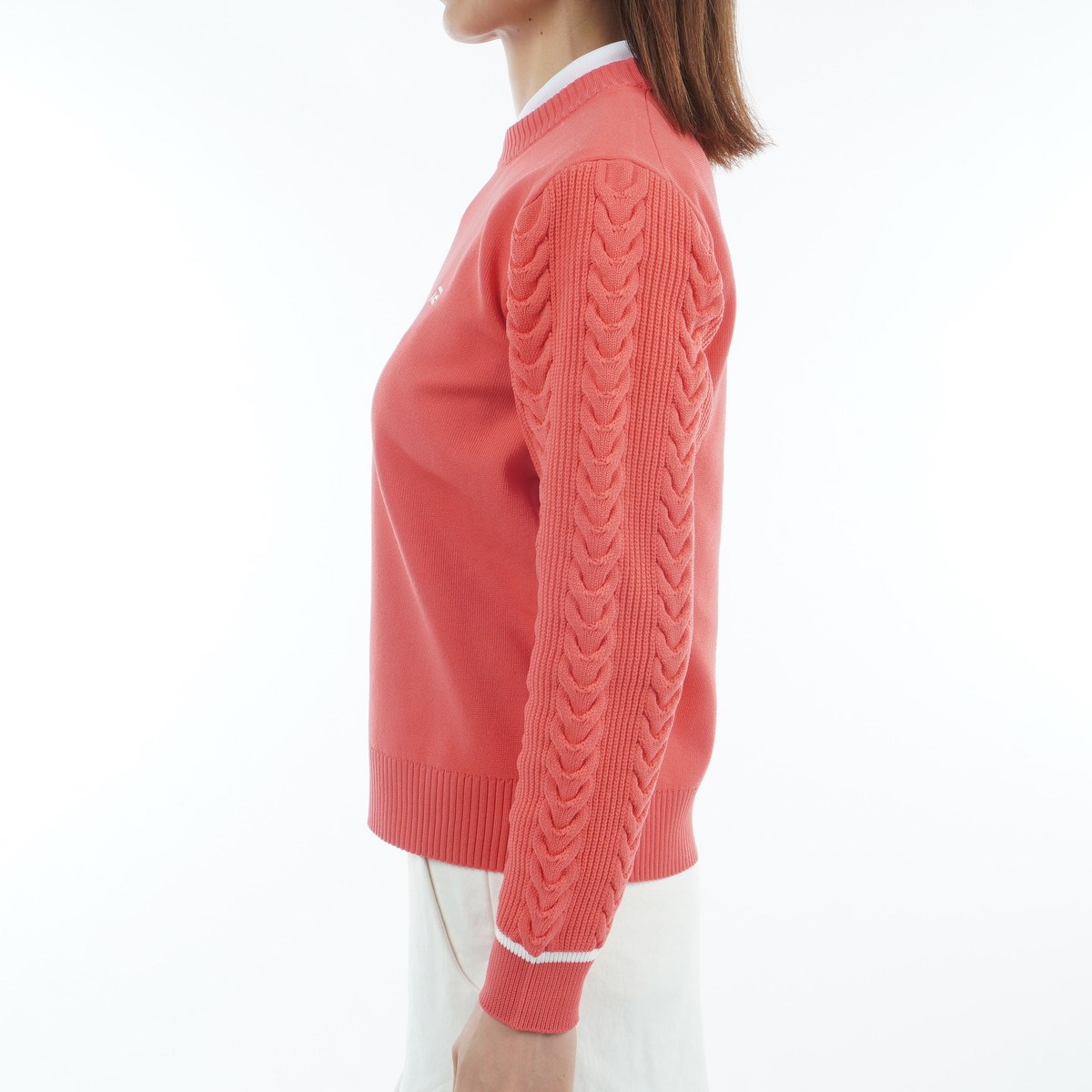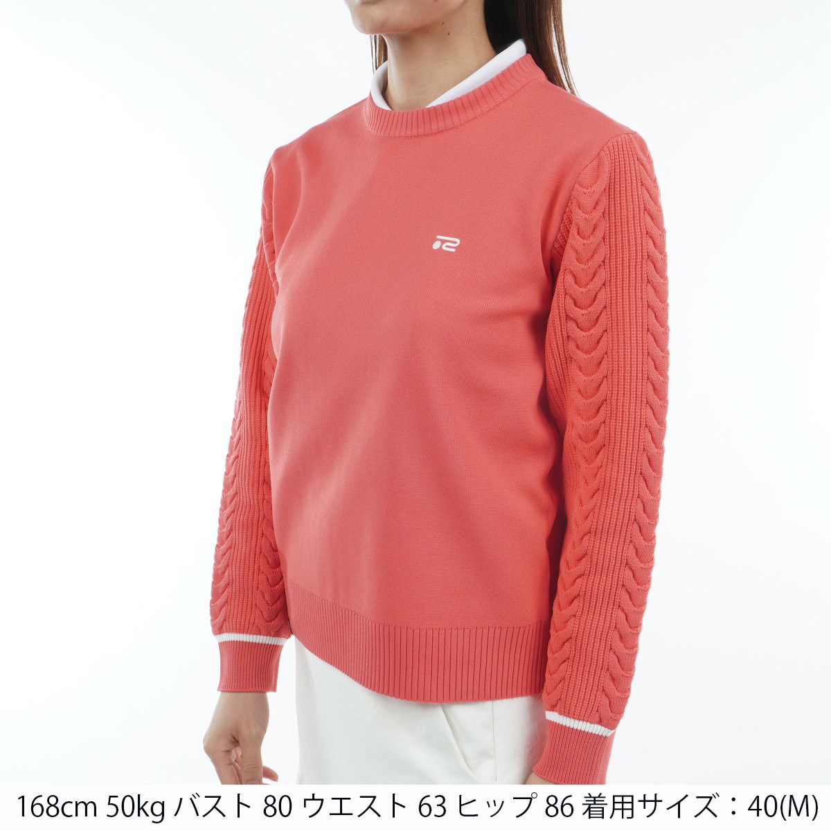ロサーセン ROSASEN 軽量 ケーブル編み クルーネックセーター L(42) ピンク 73 レディス