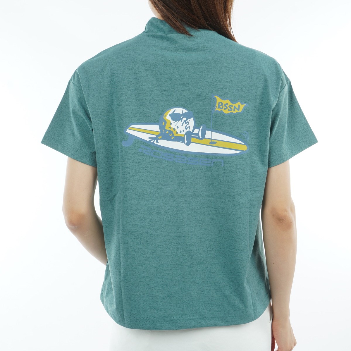 ロサーセン ROSASEN HERITECH BALL BOY ストレッチ ソロナ モックネック半袖シャツ M(40) ライトグリーン 22 レディス