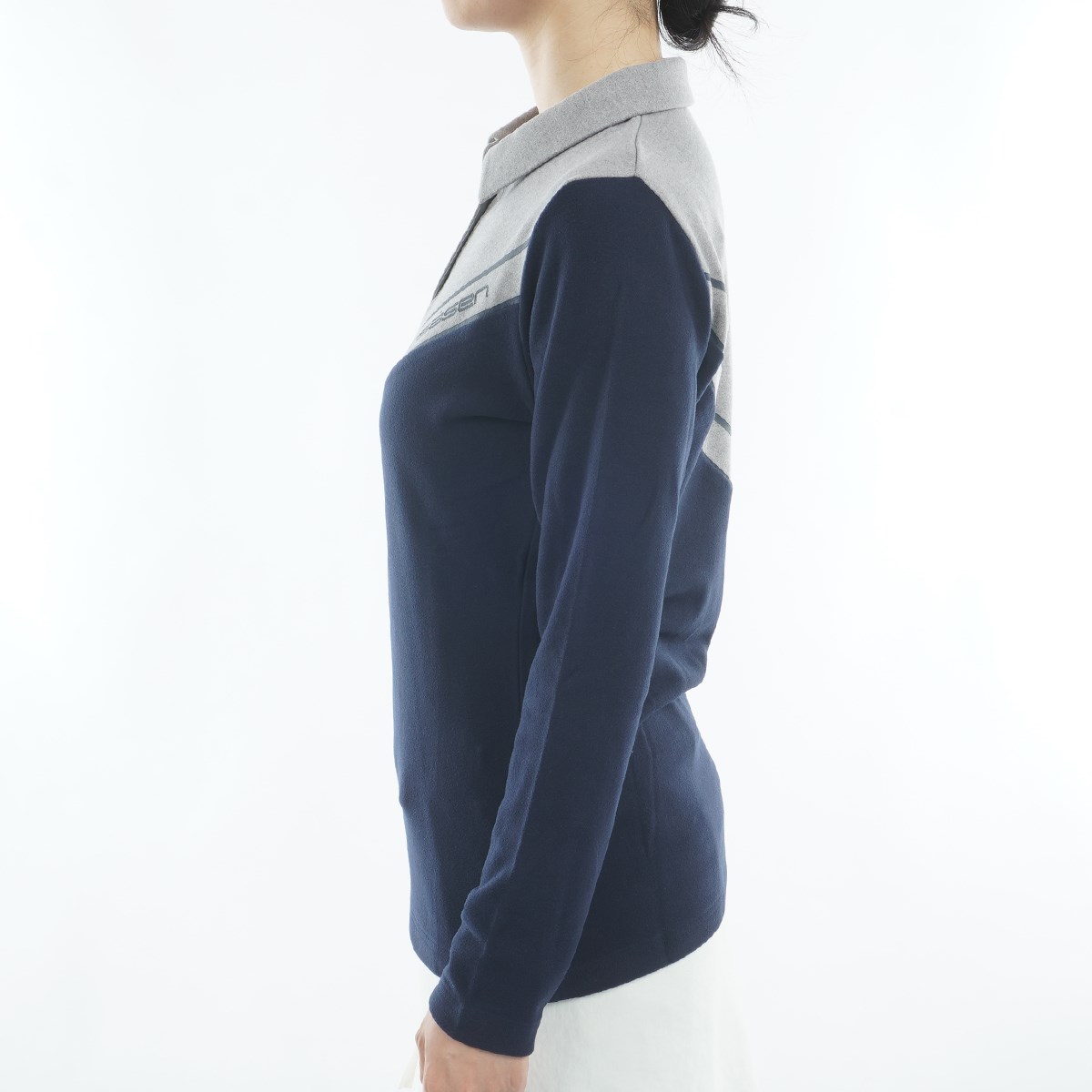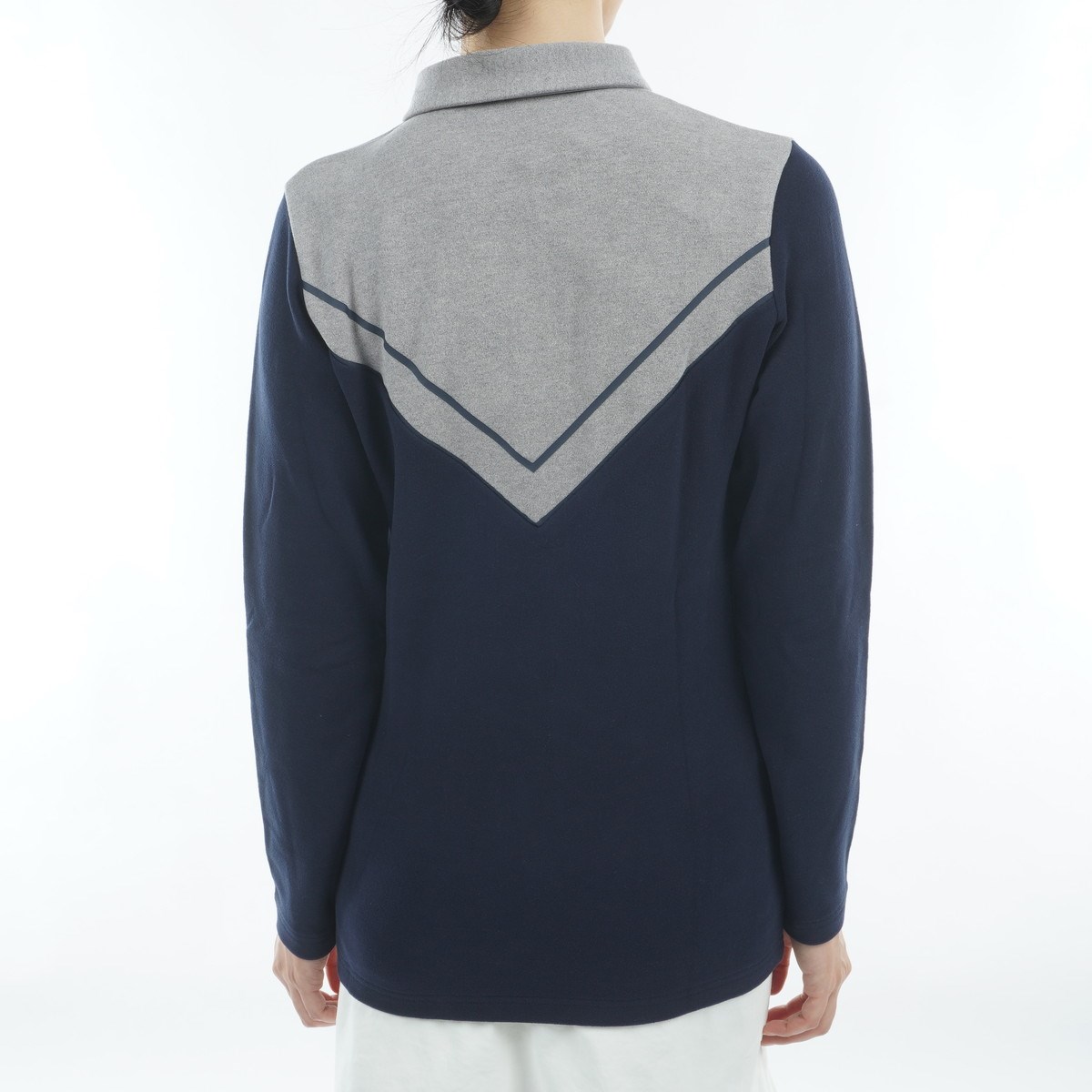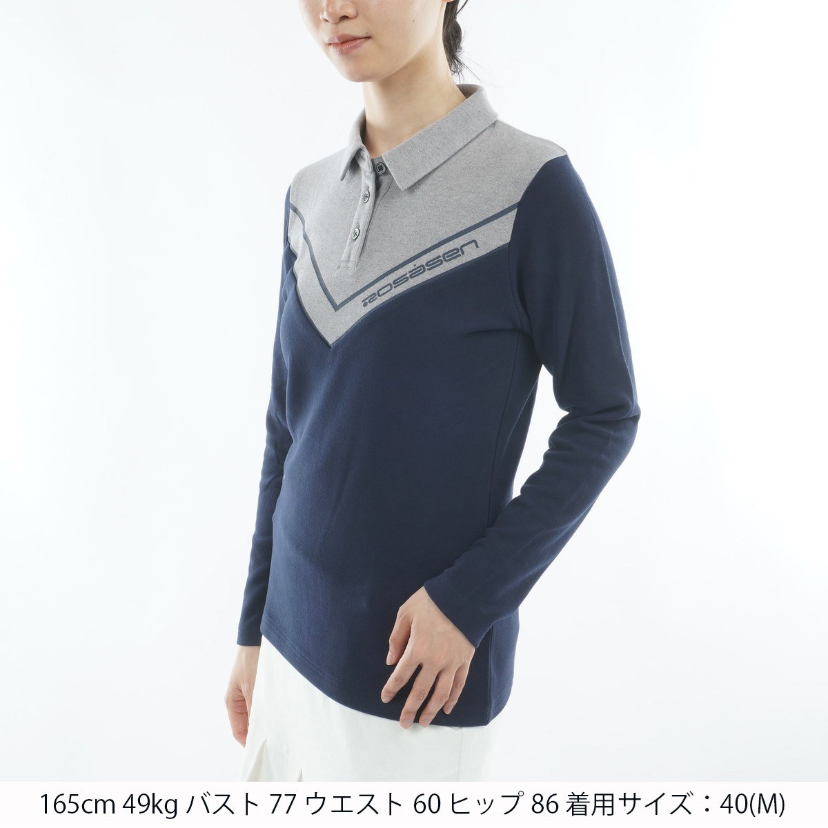 ロサーセン ROSASEN ストレッチ 両面起毛 V字配色長袖ポロシャツ M(40) ネイビー 98 レディス