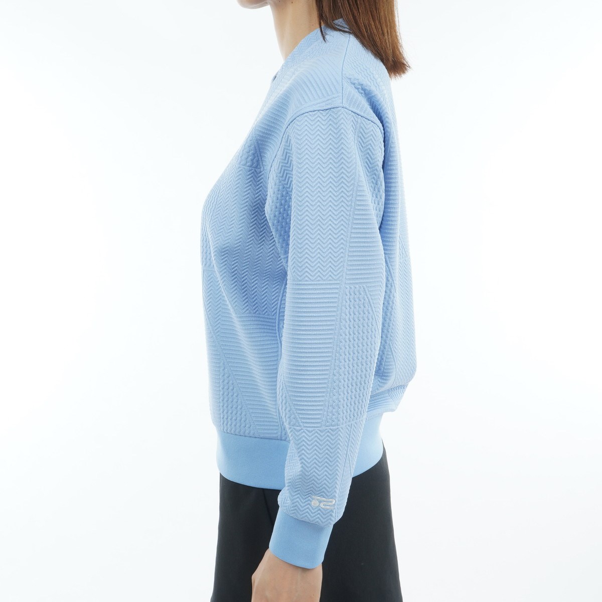 ロサーセン ROSASEN A-Line ストレッチ 膨れジャカード パッチワーク柄Vネックプルオーバー L(42) サックス 91 レディス