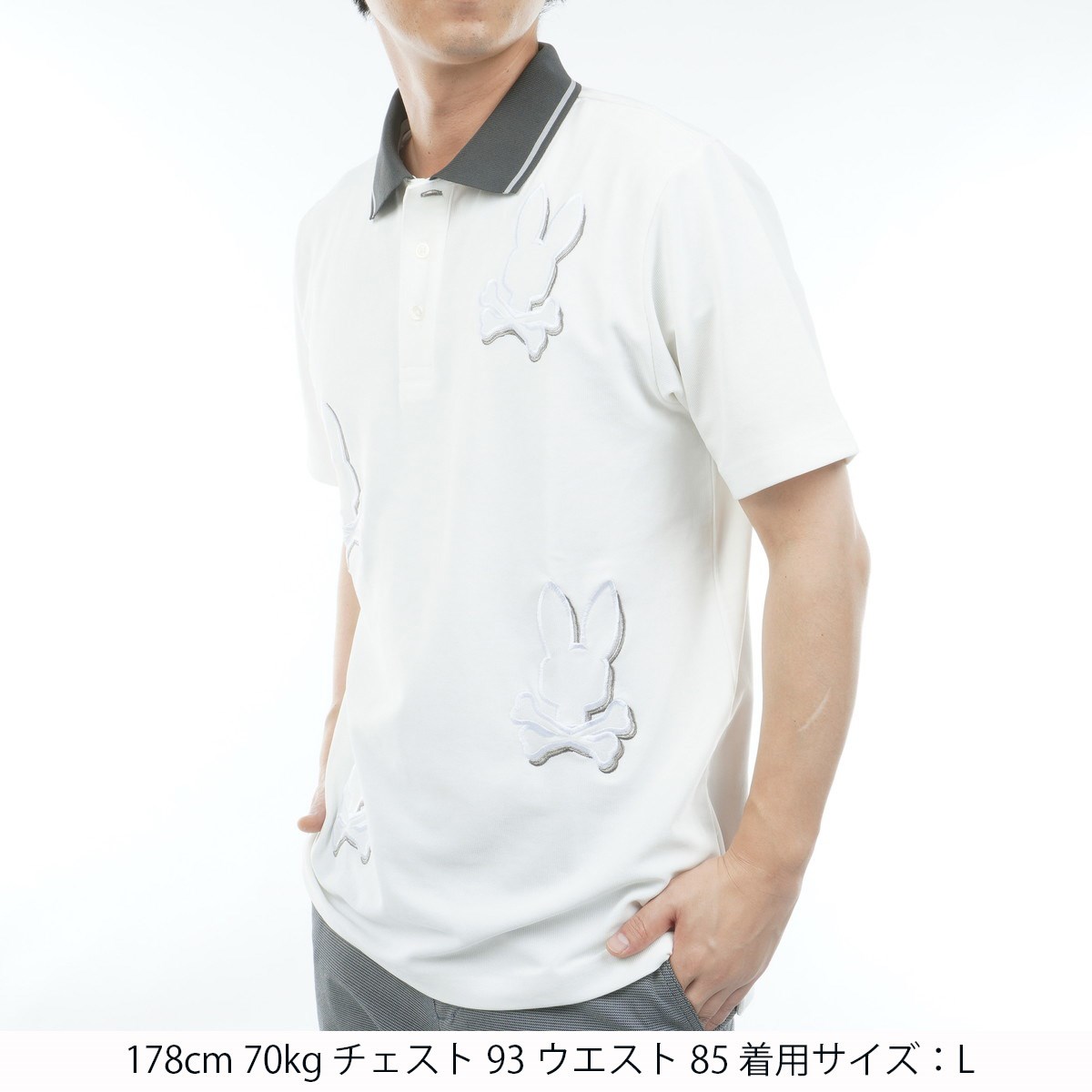 サイコバニー PSYCHO BUNNY GOLF ビッグバニーロゴ エンブロイダリー 半袖ポロシャツ M ホワイト